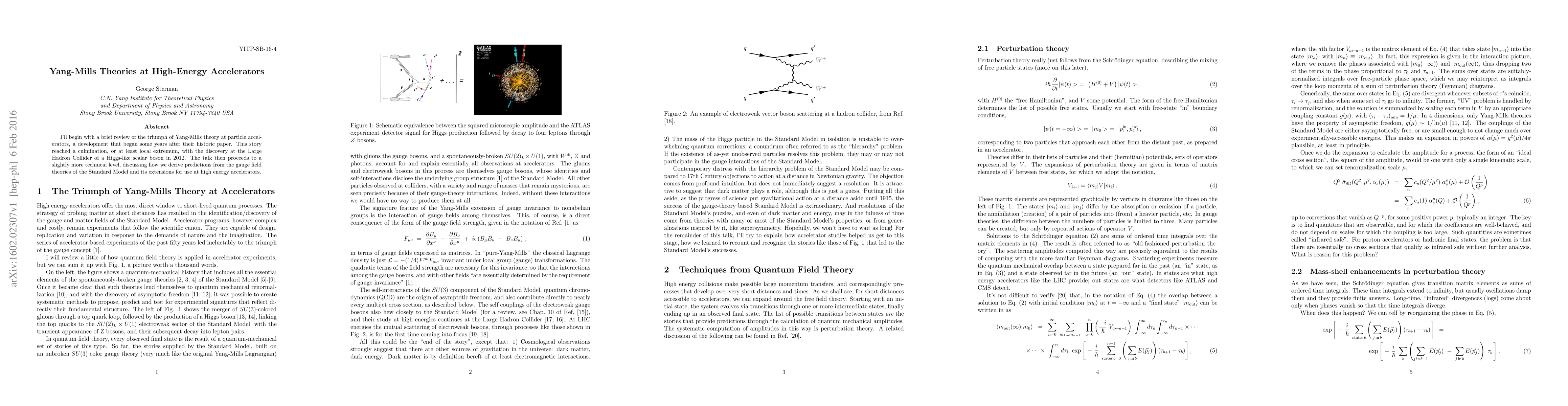 I'll begin with a brief review of the triumph of Yang-Mills theory at particle accelerators, a development that began some years after their historic paper. This story reached a culmination, or at least local extremum, with the discovery at the Large Hadron Collider of a Higgs-like scalar boson in 2012. The talk then proceeds to a slightly more technical level, discussing how we derive predictions from the gauge field theories of the Standard Model and its extensions for use at high energy accelerators.