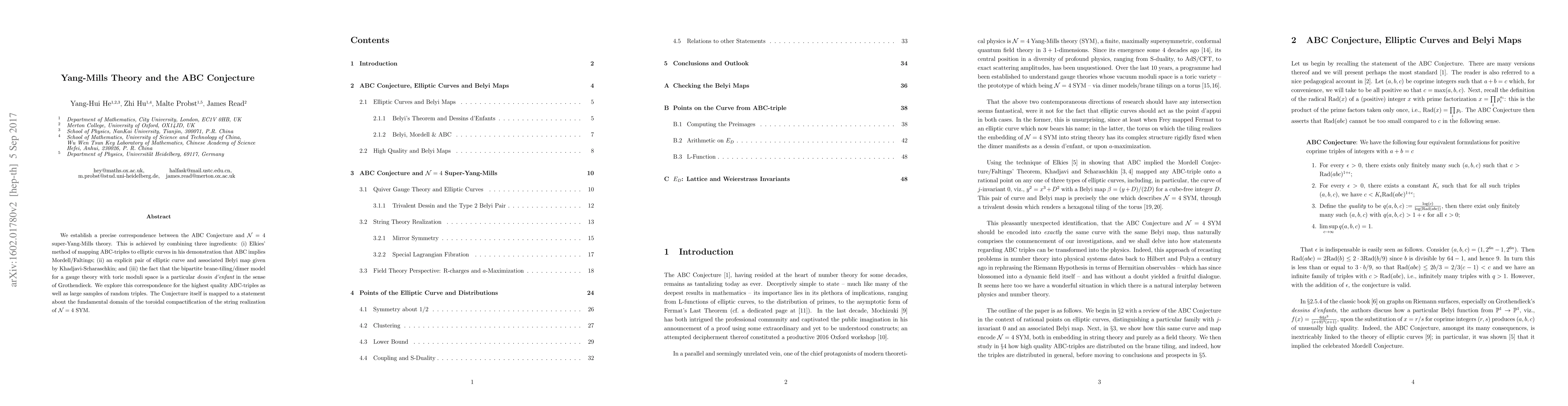 We establish a precise correspondence between the ABC Conjecture and N=4 super-Yang-Mills theory. This is achieved by combining three ingredients: (i) Elkies' method of mapping ABC-triples to elliptic curves in his demonstration that ABC implies Mordell/Faltings; (ii) an explicit pair of elliptic curve and associated Belyi map given by Khadjavi-Scharaschkin; and (iii) the fact that the bipartite brane-tiling/dimer model for a gauge theory with toric moduli space is a particular dessin d'enfant in the sense of Grothendieck. We explore this correspondence for the highest quality ABC-triples as well as large samples of random triples. The Conjecture itself is mapped to a statement about the fundamental domain of the toroidal compactification of the string realization of N=4 SYM.