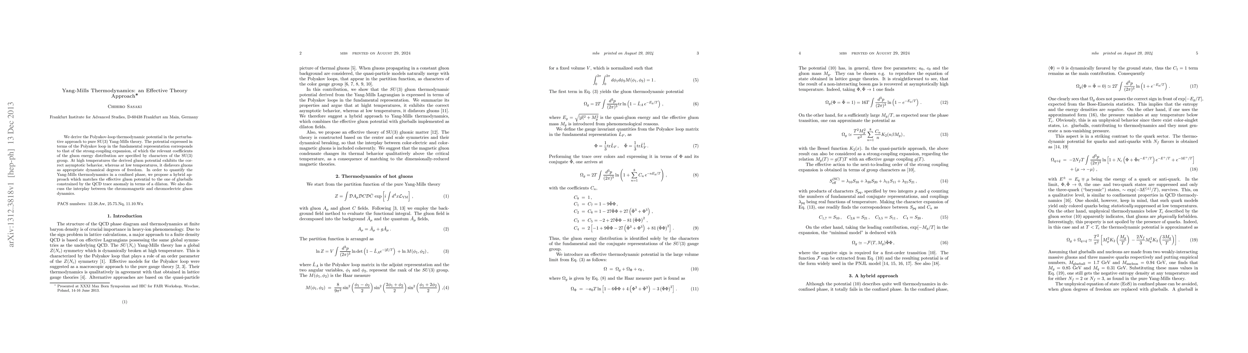 This paper derives the Polyakov-loop thermodynamic potential for pure SU(3) Yang-Mills theory using a perturbative approach, highlighting the relevance of SU(3) group characters for gluon energy distribution. The study proposes a hybrid method to quantify thermodynamics in a confined phase, linking the effective gluon potential to glueballs via a dilaton and discussing chromomagnetic and chromoelectric dynamics.