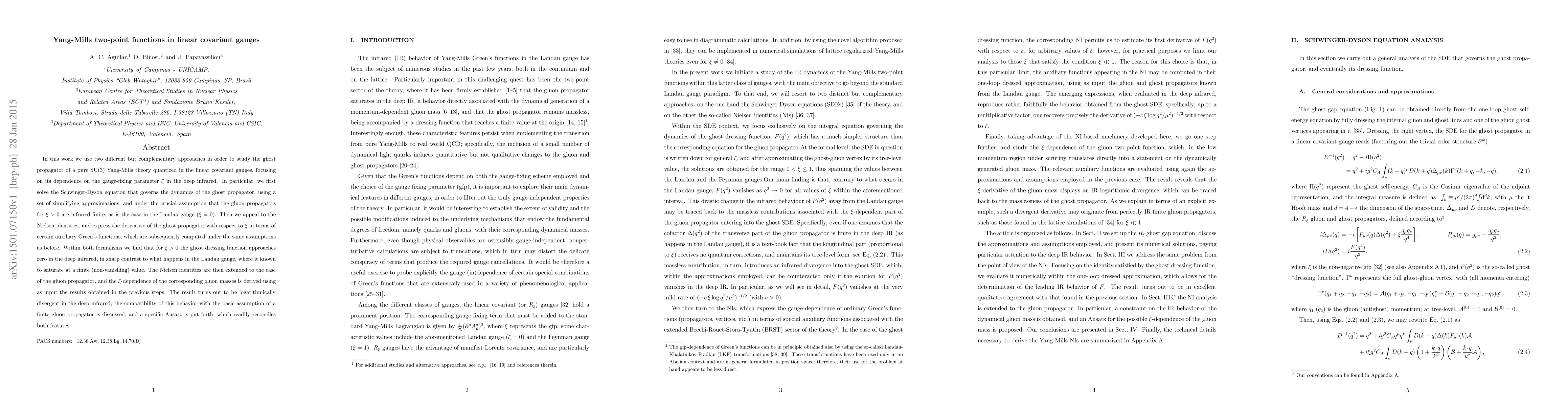 In this work we use two different but complementary approaches in order to study the ghost propagator of a pure SU(3) Yang-Mills theory quantized in the linear covariant gauges, focusing on its dependence on the gauge-fixing parameter $\xi$ in the deep infrared. In particular, we first solve the Schwinger-Dyson equation that governs the dynamics of the ghost propagator, using a set of simplifying approximations, and under the crucial assumption that the gluon propagators for $\xi>0$ are infrared finite, as is the case in the Landau gauge $(\xi=0)$. Then we appeal to the Nielsen identities, and express the derivative of the ghost propagator with respect to $\xi$ in terms of certain auxiliary Green's functions, which are subsequently computed under the same assumptions as before. Within both formalisms we find that for $\xi>0$ the ghost dressing function approaches zero in the deep infrared, in sharp contrast to what happens in the Landau gauge, where it known to saturate at a finite (non-vanishing) value. The Nielsen identities are then extended to the case of the gluon propagator, and the $\xi$-dependence of the corresponding gluon masses is derived using as input the results obtained in the previous steps. The result turns out to be logarithmically divergent in the deep infrared; the compatibility of this behavior with the basic assumption of a finite gluon propagator is discussed, and a specific Ansatz is put forth, which readily reconciles both features.