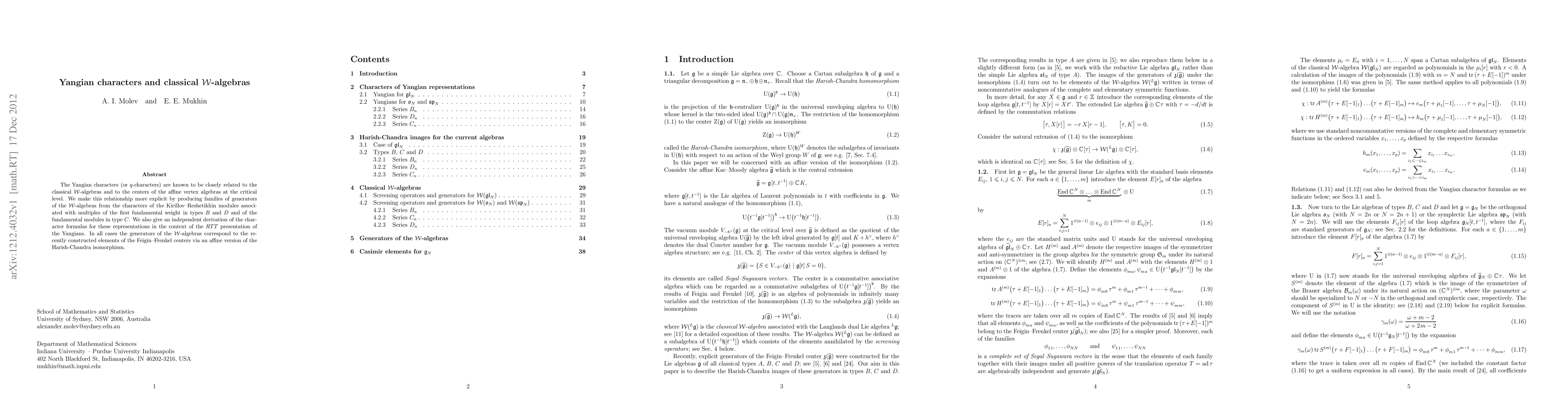 This paper explores the relationship between Yangian characters and classical W-algebras, deriving families of W-algebra generators from Kirillov-Reshetikhin module characters in types B, D, and C. It also provides an independent derivation of character formulas using the RTT presentation of Yangians, linking W-algebra generators to Feigin-Frenkel centers via an affine Harish-Chandra isomorphism.