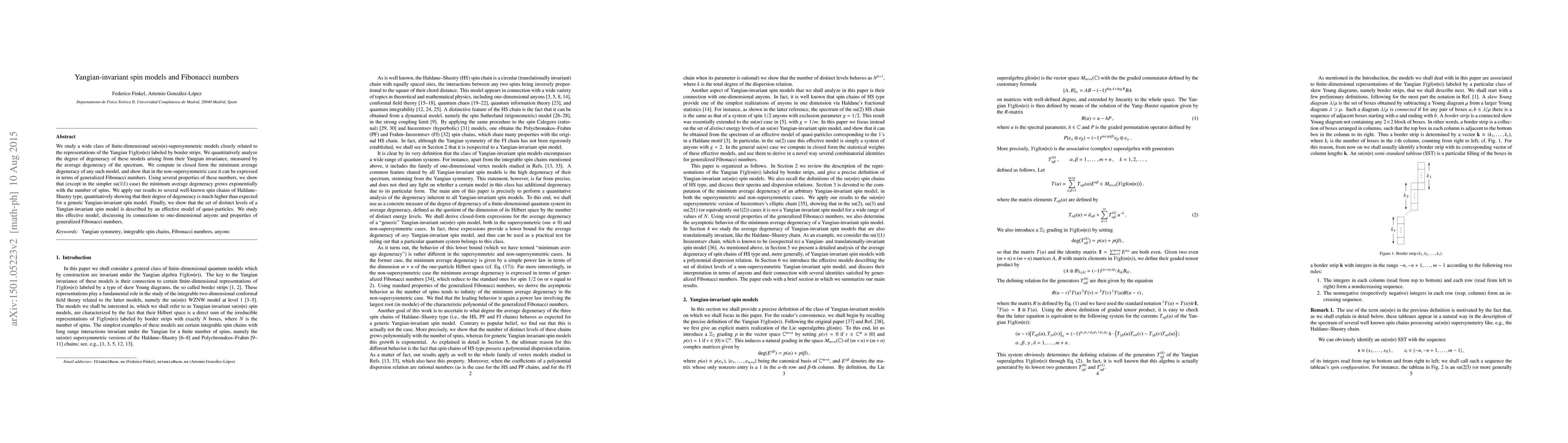 We study a wide class of finite-dimensional su(m|n)-supersymmetric models closely related to the representations of the Yangian Y(sl(m|n)) labeled by border strips. We quantitatively analyze the degree of degeneracy of these models arising from their Yangian invariance, measured by the average degeneracy of the spectrum. We compute in closed form the minimum average degeneracy of any such model, and show that in the non-supersymmetric case it can be expressed in terms of generalized Fibonacci numbers. Using several properties of these numbers, we show that (except in the simpler su(1|1) case) the minimum average degeneracy grows exponentially with the number of spins. We apply our results to several well-known spin chains of Haldane-Shastry type, quantitatively showing that their degree of degeneracy is much higher than expected for a generic Yangian-invariant spin model. Finally, we show that the set of distinct levels of a Yangian-invariant spin model is described by an effective model of quasi-particles. We study this effective model, discussing its connections to one-dimensional anyons and properties of generalized Fibonacci numbers.