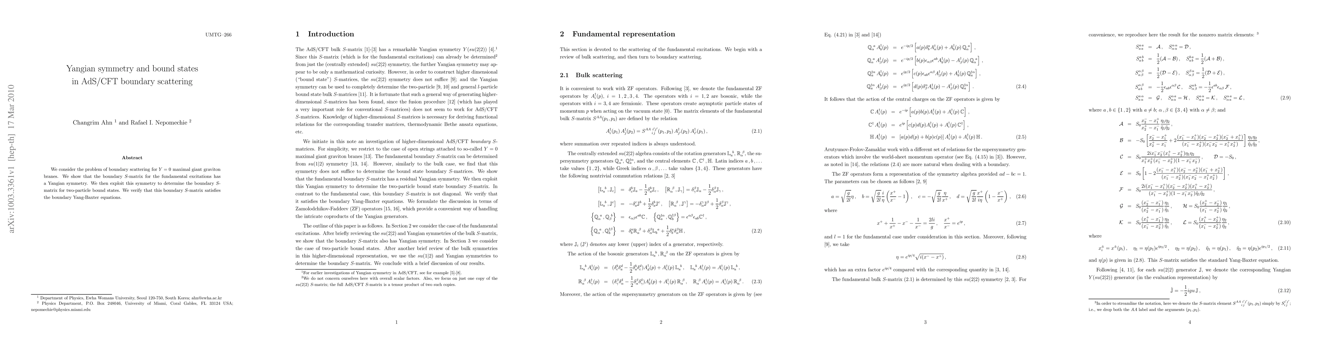 This paper discovers that boundary scattering for a specific type of gravitonbrane has a Yangian symmetry, allowing it to calculate the S-matrix for bound states and verify its consistency with known equations.