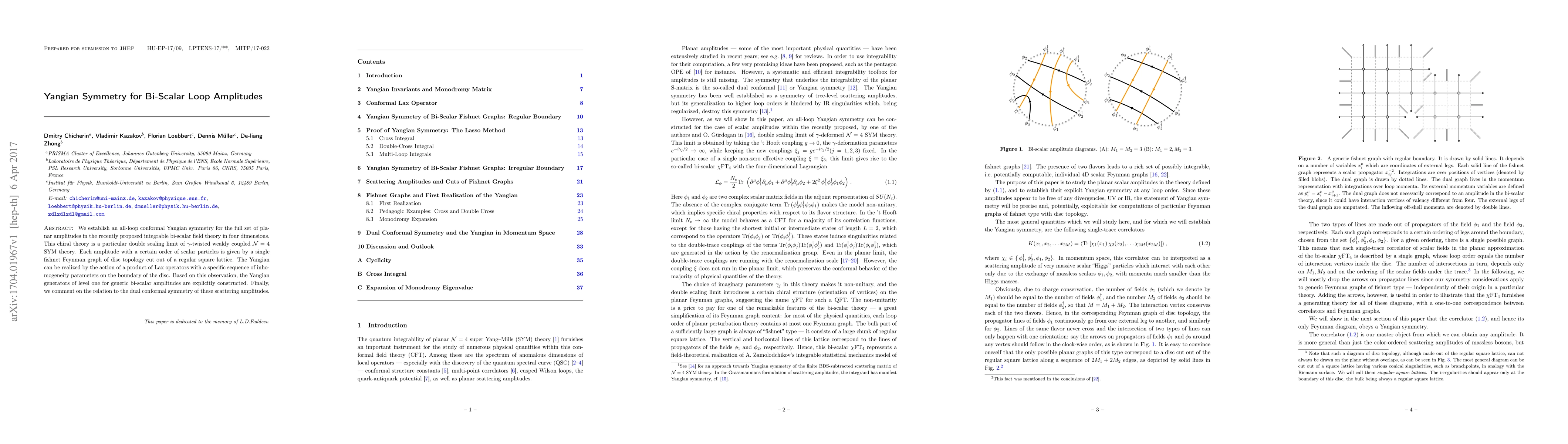 We establish an all-loop conformal Yangian symmetry for the full set of planar amplitudes in the recently proposed integrable bi-scalar field theory in four dimensions. This chiral theory is a particular double scaling limit of gamma-twisted weakly coupled N=4 SYM theory. Each amplitude with a certain order of scalar particles is given by a single fishnet Feynman graph of disc topology cut out of a regular square lattice. The Yangian can be realized by the action of a product of Lax operators with a specific sequence of inhomogeneity parameters on the boundary of the disc. Based on this observation, the Yangian generators of level one for generic bi-scalar amplitudes are explicitly constructed. Finally, we comment on the relation to the dual conformal symmetry of these scattering amplitudes.