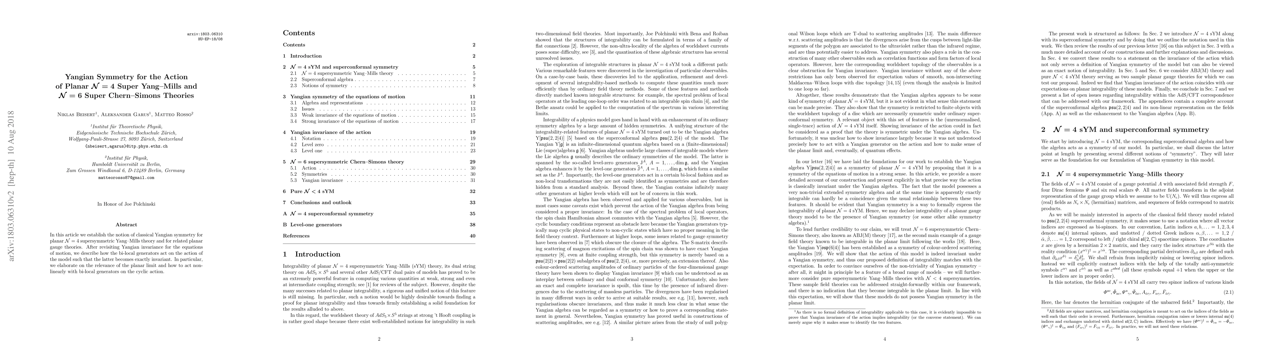 This paper establishes classical Yangian symmetry for planar N=4 supersymmetric Yang-Mills theory and related planar gauge theories, detailing how bi-local generators act on the model's action to achieve exact invariance, with a focus on the non-linear effects in the planar limit.