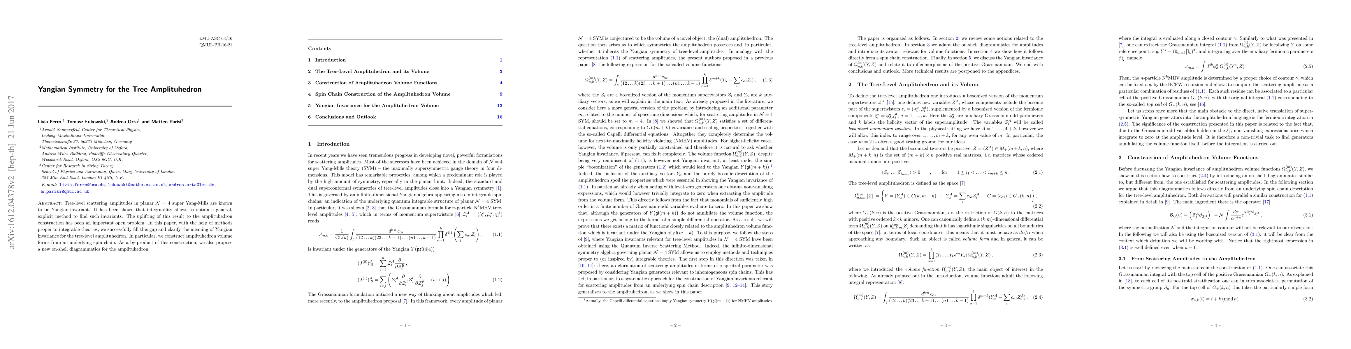 This paper demonstrates the Yangian symmetry for the tree-level amplituhedron in planar N=4 super Yang-Mills, using integrable theory methods to construct amplituhedron volume forms from an underlying spin chain, and proposes a new on-shell diagrammatic representation for the amplituhedron.
