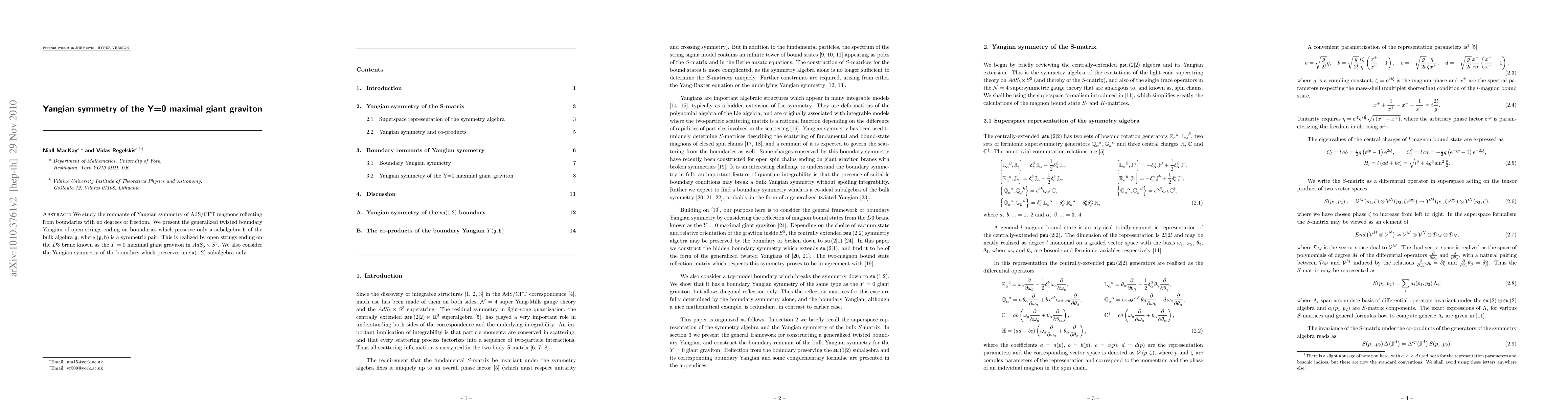 This paper investigates the Yangian symmetry of magnons in the context of AdS/CFT, focusing on the Y=0 maximal giant graviton in AdS_5 x S^5. It presents a generalized twisted boundary Yangian for open strings on the D3 brane, preserving a subalgebra of the bulk algebra, and examines the symmetry of the boundary that preserves an su(1|2) subalgebra.