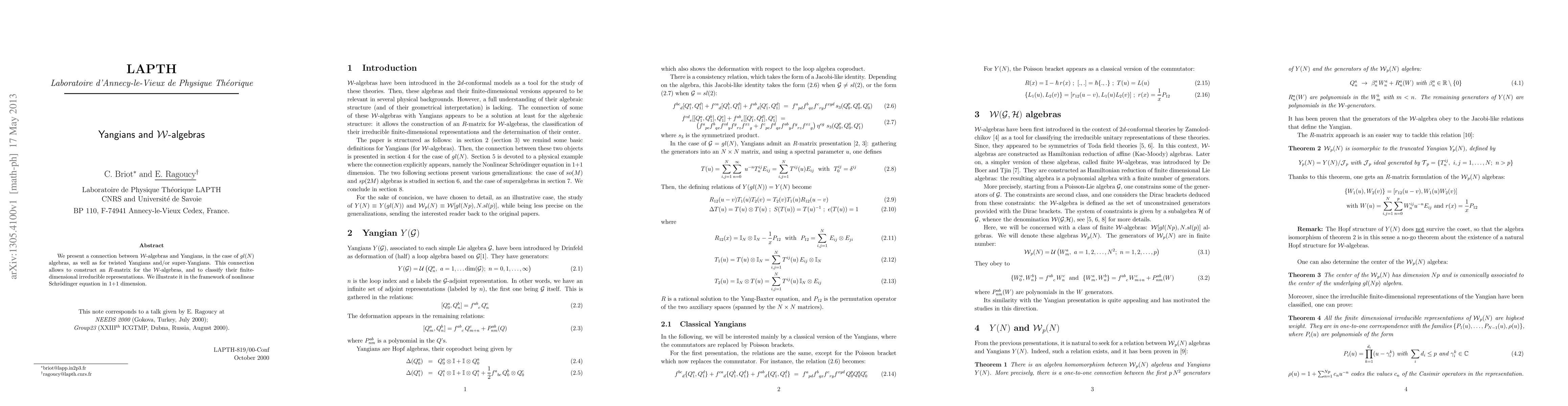 We present a connection between W-algebras and Yangians, in the case of gl(N) algebras, as well as for twisted Yangians and/or super-Yangians. This connection allows to construct an R-matrix for the W-algebras, and to classify their finite-dimensional irreducible representations. We illustrate it in the framework of nonlinear Schroedinger equation in 1+1 dimension.