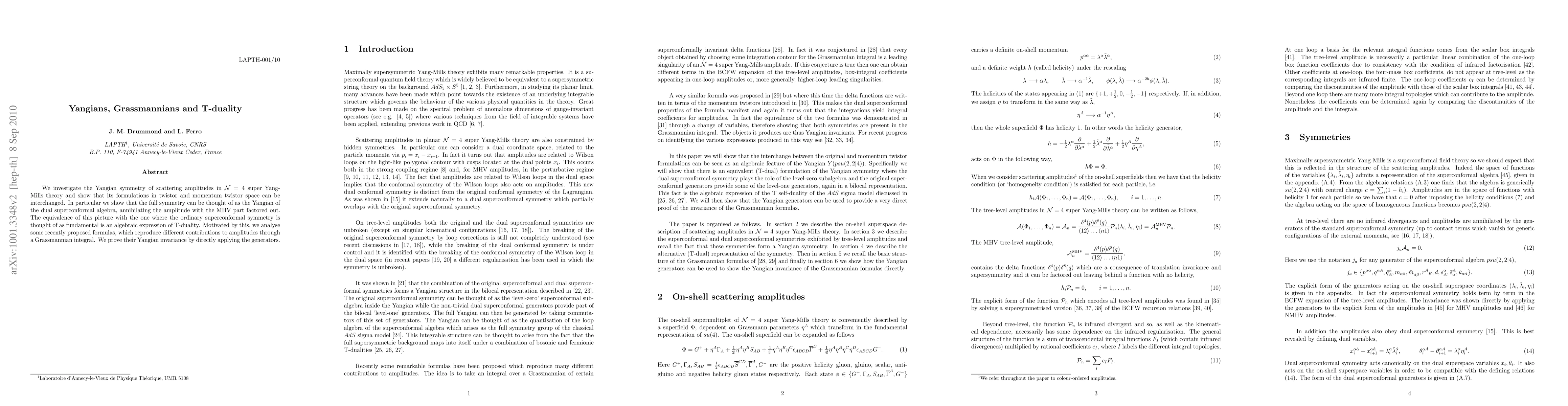Researchers investigate Yangian symmetry in N=4 super Yang-Mills theory, showing it can be interchanged between twistor and momentum space formulations, revealing an algebraic expression of T-duality.