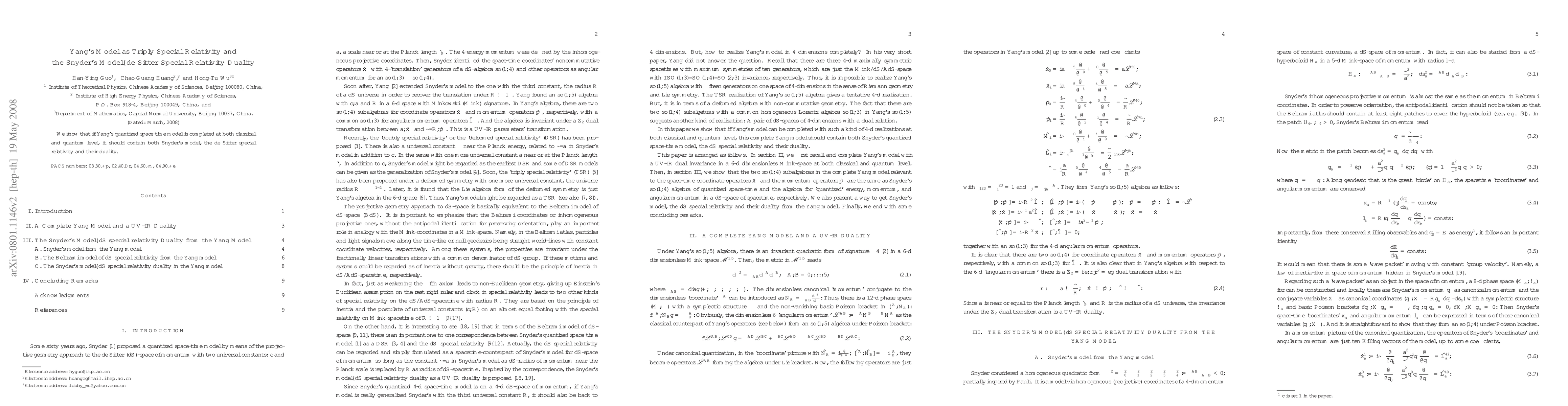 Summary: This paper demonstrates that a completed version of Yang's model, as the earliest form of Triply Special Relativity (TSR), inherently includes Snyder's quantized space-time model, de Sitter Special Relativity, and reveals their underlying duality.