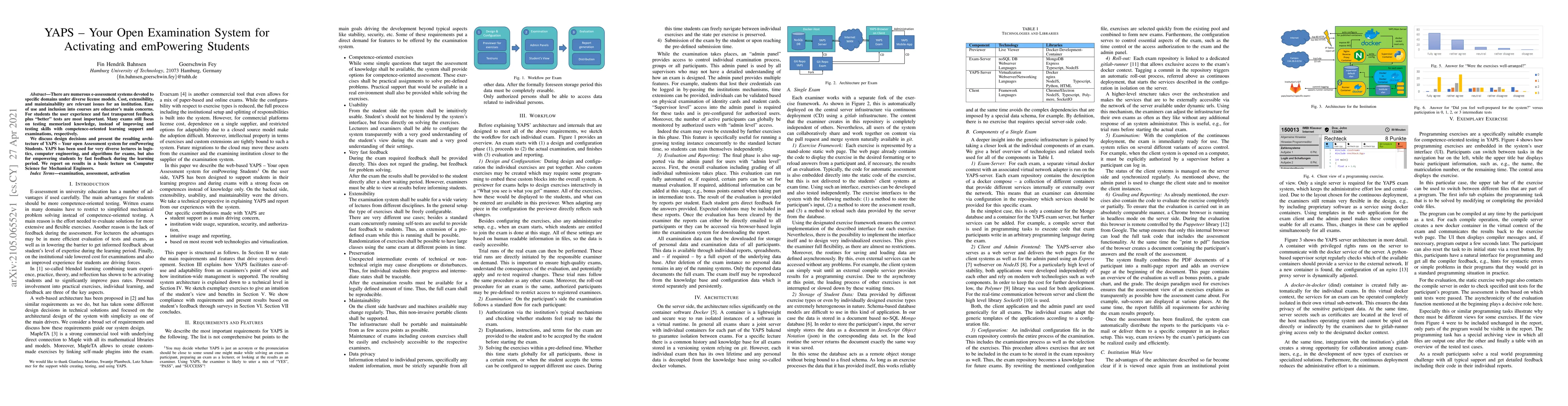 There are numerous e-assessment systems devoted to specific domains under diverse license models. Cost, extensibility, and maintainability are relevant issues for an institution. Ease of use and inclusion into courses are educator's main concerns. For students the user experience and fast transparent feedback plus "better" tests are most important. Many exams still focus on testing memorized knowledge, instead of improving and testing skills with competence-oriented learning support and examinations, respectively. We discuss design decisions and present the resulting architecture of YAPS - Your open Assessment system for emPowering Students. YAPS has been used for very diverse lectures in logistics, computer engineering, and algorithms for exams, but also for empowering students by fast feedback during the learning period. We report on results in a basic lecture on Computer Science for Mechanical Engineers.