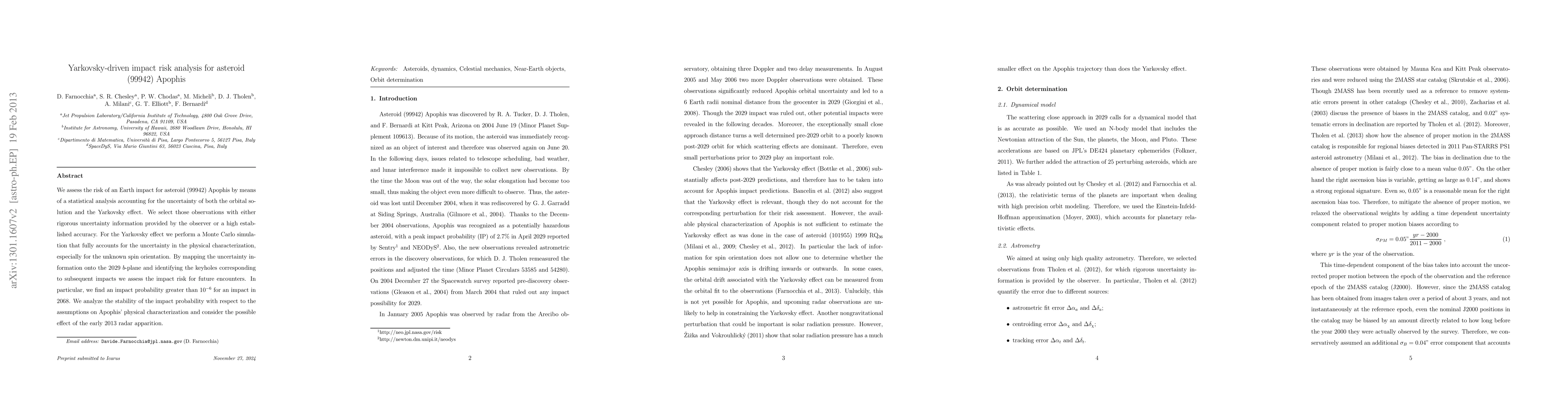 This paper analyzes the impact risk for asteroid (99942) Apophis using a statistical approach that considers orbital uncertainties and the Yarkovsky effect, finding a significant impact probability for 2068. It also examines the stability of this risk under different assumptions and the impact of radar observations from 2013.