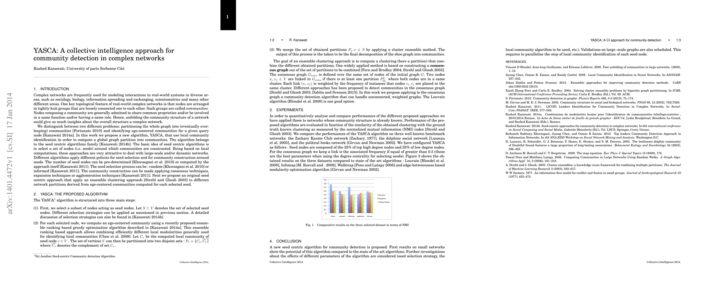 This paper introduces YASCA, a novel approach to community detection in complex networks that leverages ensemble clustering on ego-centered communities computed from selected seeds, demonstrating its validity through real-world network experiments.