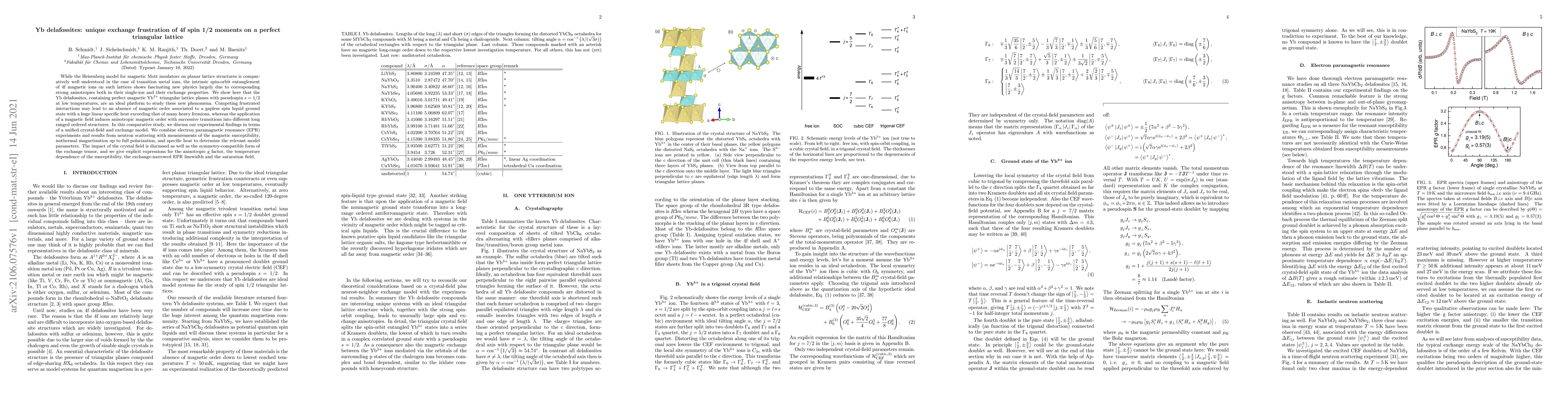 While the Heisenberg model for magnetic Mott insulators on planar lattice structures is comparatively well understood in the case of transition metal ions, the intrinsic spin-orbit entanglement of 4f magnetic ions on such lattices shows fascinating new physics largely due to corresponding strong anisotropies both in their single-ion and their exchange properties. We show here that the Yb delafossites, containing perfect magnetic Yb$^{3+}$ triangular lattice planes with pseudospin $s=1/2$ at low temperatures, are an ideal platform to study these new phenomena. Competing frustrated interactions may lead to an absence of magnetic order associated to a gapless spin liquid ground state with a huge linear specific heat exceeding that of many heavy fermions, whereas the application of a magnetic field induces anisotropic magnetic order with successive transitions into different long ranged ordered structures. In this comparative study, we discuss our experimental findings in terms of a unified crystal-field and exchange model. We combine electron paramagnetic resonance (EPR) experiments and results from neutron scattering with measurements of the magnetic susceptibility, isothermal magnetization up to full polarization, and specific heat to determine the relevant model parameters. The impact of the crystal field is discussed as well as the symmetry-compatible form of the exchange tensor, and we give explicit expressions for the anisotropic g factor, the temperature dependence of the susceptibility, the exchange-narrowed EPR linewidth and the saturation field.