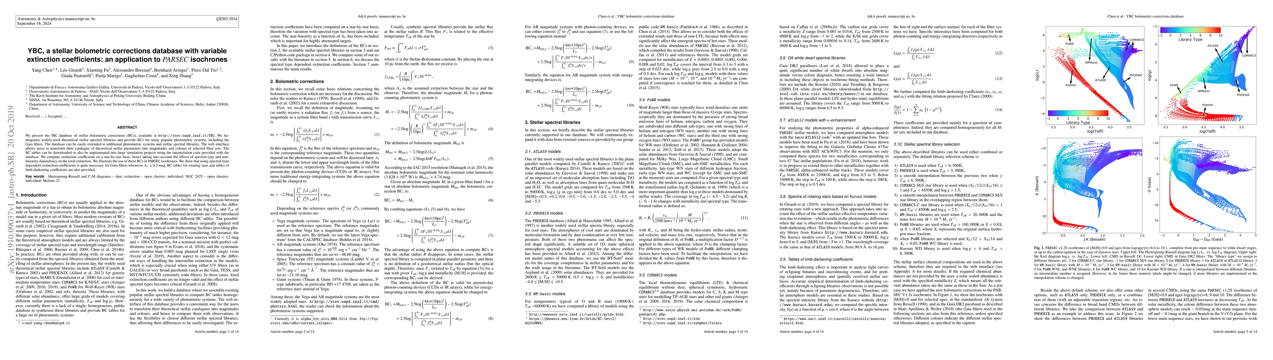 The YBC database offers stellar bolometric corrections and extinction coefficients, facilitating transformations between theoretical stellar parameters and photometric magnitudes. It is particularly useful for \texttt{PARSEC} isochrones, especially for Gaia filters when $\Av\gtrsim 0.5$\,mag, due to its spectral-type dependent extinction coefficients.