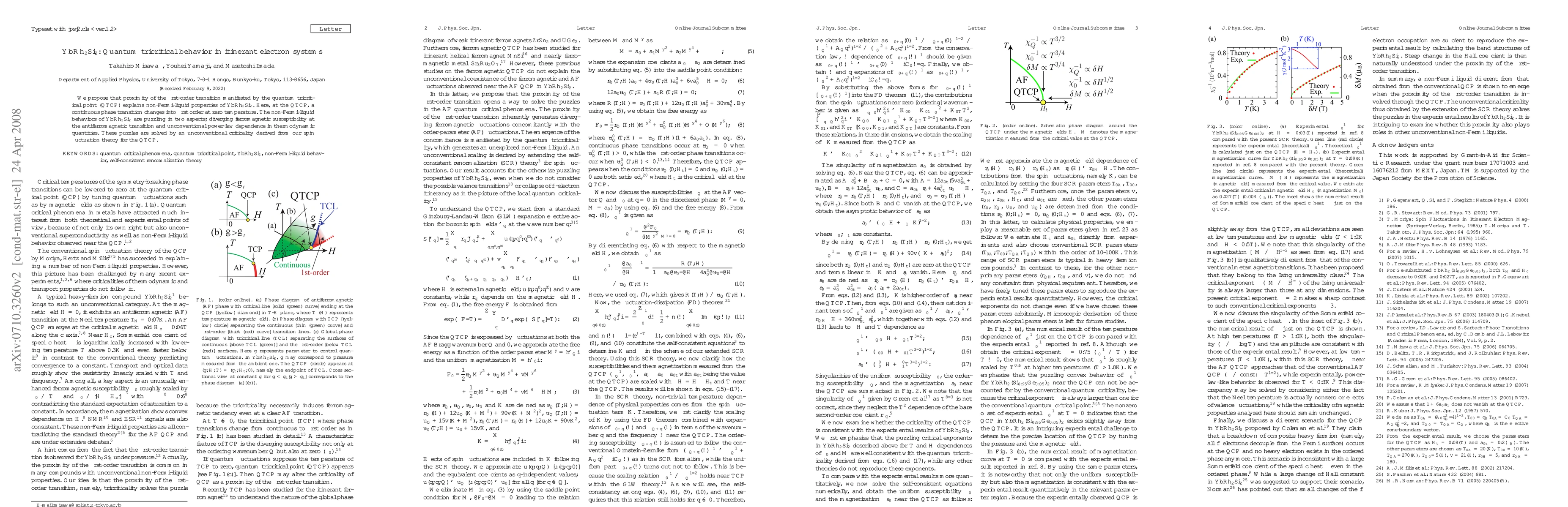 This paper explores YbRh2Si2, proposing that its non-Fermi-liquid properties arise from a quantum tricritical point (QTCP) where a continuous phase transition becomes first-order at zero temperature. The study resolves the material's unusual thermodynamic behaviors through an unconventional criticality derived from spin fluctuation theory.