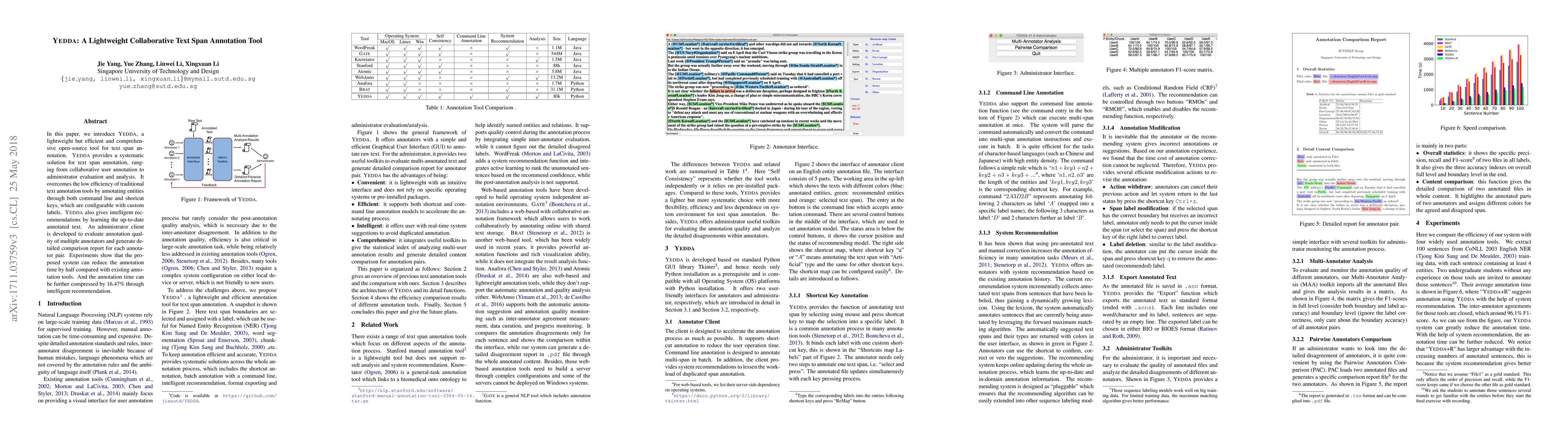 YEDDA is a lightweight, open-source tool for collaborative text span annotation that enhances efficiency through customizable shortcuts and intelligent recommendations. It significantly reduces annotation time and includes an administrator client for evaluating and comparing annotator performance.