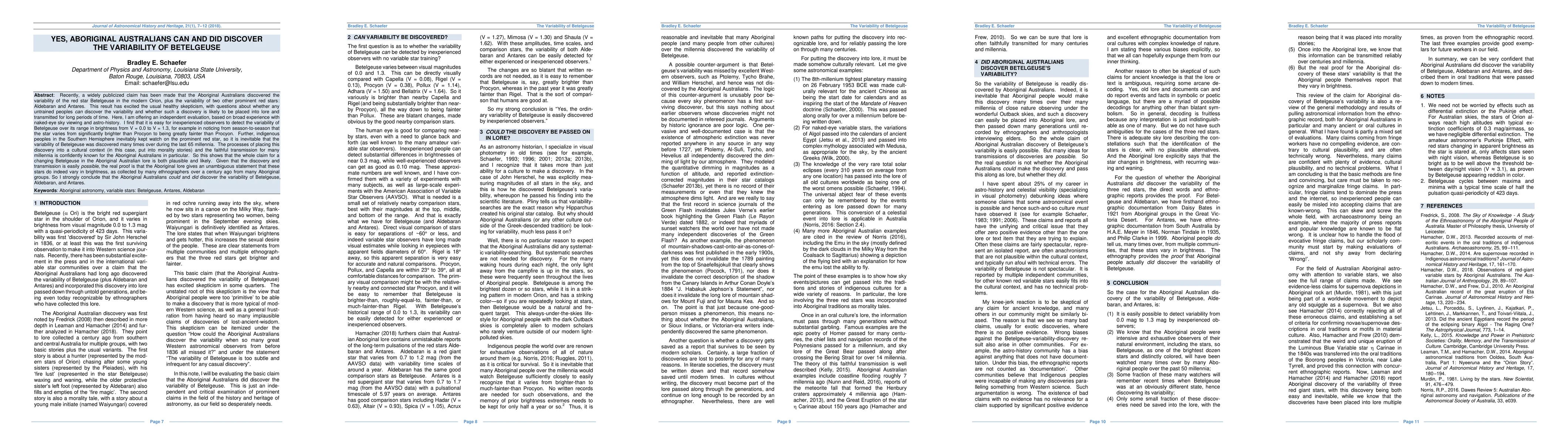 This paper argues that Aboriginal Australians could and likely did discover the variability of Betelgeuse, Aldebaran, and Antares, based on the ease of detecting such changes with the naked eye and the cultural transmission practices of indigenous Southern Hemisphere peoples.