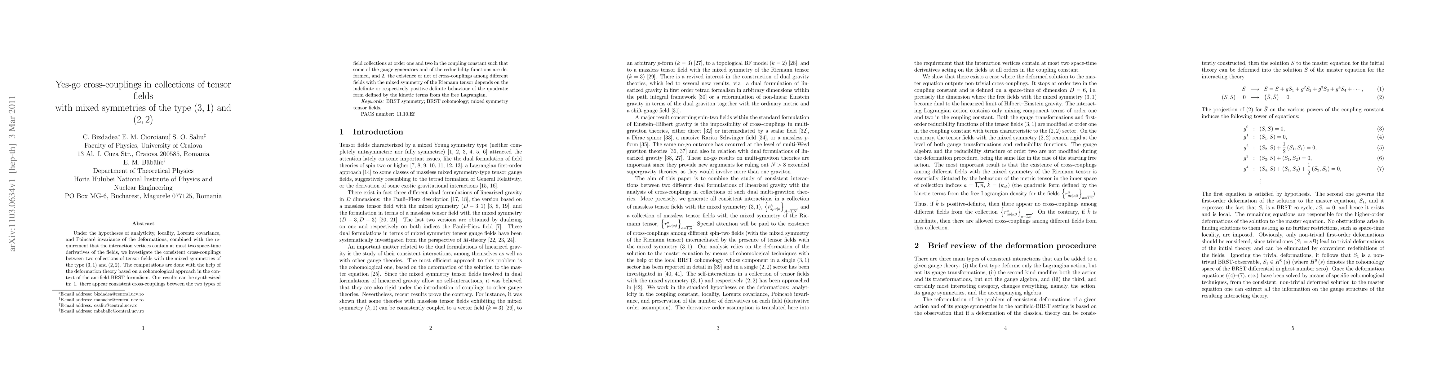 Researchers investigated cross-couplings between tensor fields with mixed symmetries (3,1) and (2,2), finding consistent couplings at order one and two in the coupling constant, and that their existence depends on the quadratic form of kinetic terms.