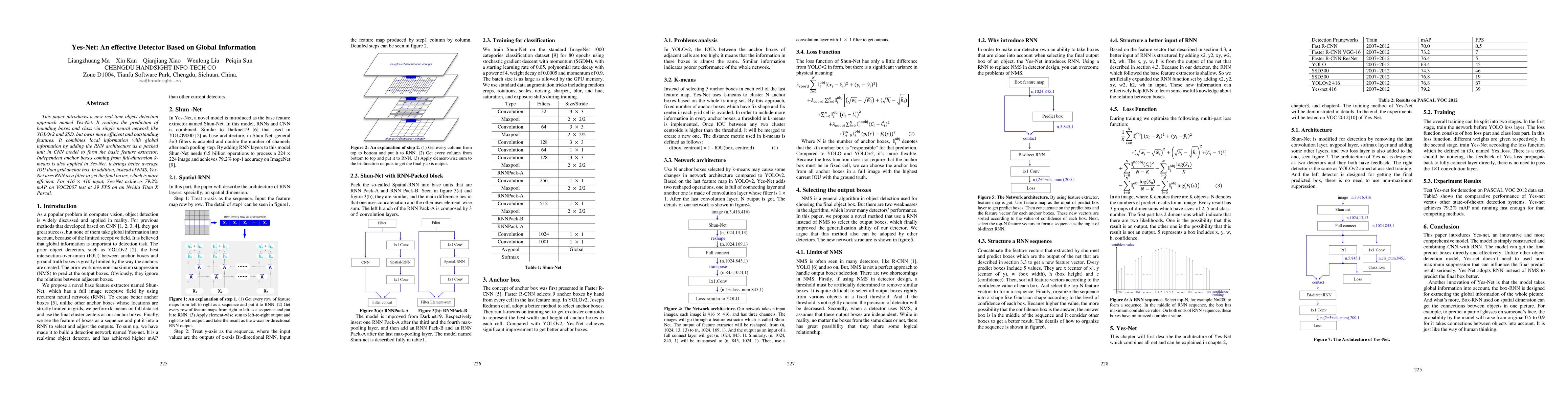 This paper introduces a new real-time object detection approach named Yes-Net. It realizes the prediction of bounding boxes and class via single neural network like YOLOv2 and SSD, but owns more efficient and outstanding features. It combines local information with global information by adding the RNN architecture as a packed unit in CNN model to form the basic feature extractor. Independent anchor boxes coming from full-dimension k-means is also applied in Yes-Net, it brings better average IOU than grid anchor box. In addition, instead of NMS, Yes-Net uses RNN as a filter to get the final boxes, which is more efficient. For 416 x 416 input, Yes-Net achieves 79.2% mAP on VOC2007 test at 39 FPS on an Nvidia Titan X Pascal.