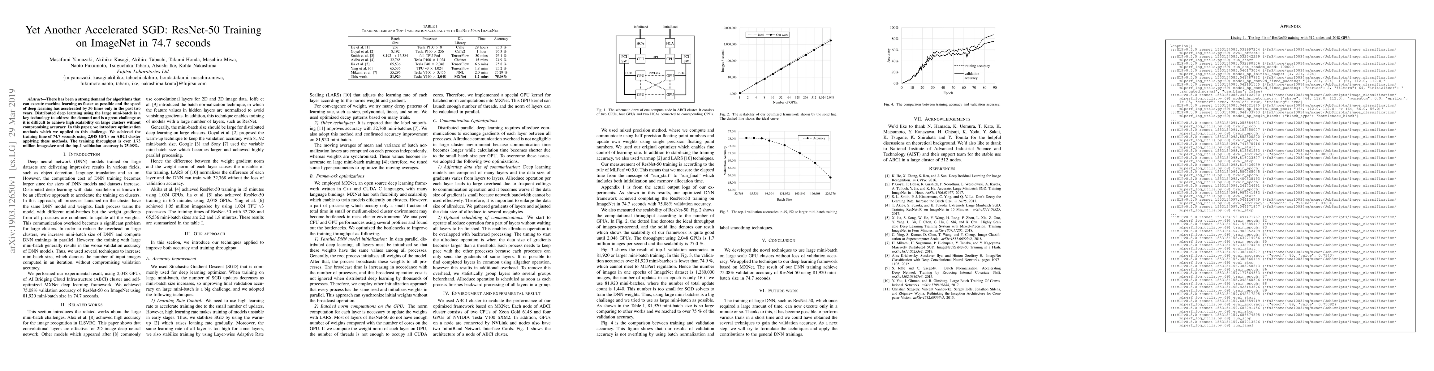 Researchers achieved record-breaking training time of 74.7 seconds for ResNet-50 on ImageNet using a distributed deep learning setup with 2,048 GPUs. The method enables faster machine learning execution without compromising accuracy.