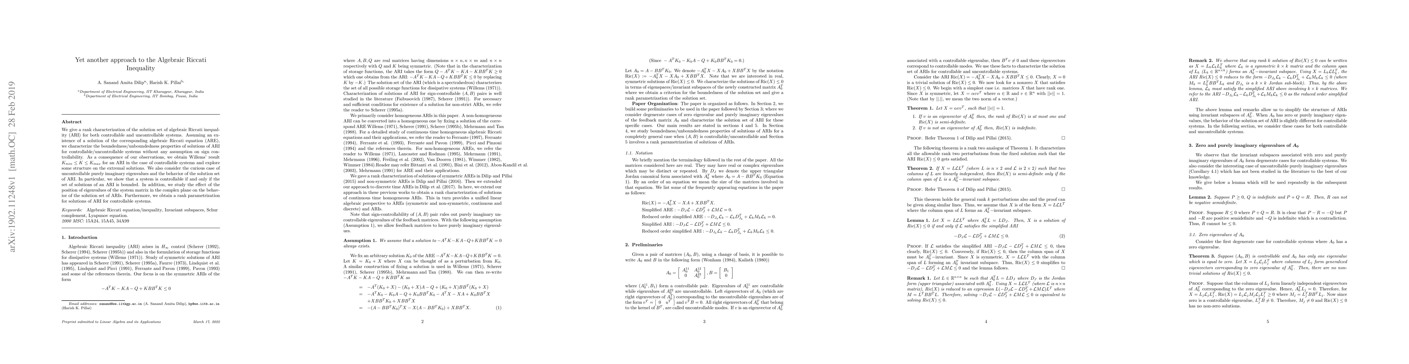 We give a rank characterization of the solution set of algebraic Riccati inequality (ARI) for both controllable and uncontrollable systems. Assuming an existence of a solution of the corresponding algebraic Riccati equation (ARE), we characterize the boundedness/unboundedness properties of solutions of ARI for controllable/uncontrollable systems without any assumption on sign controllability. As a consequence of our observations, we obtain Willems' result $K_{min}\leq K\leq K_{max}$ for an ARI in the case of controllable systems and explore some structure on the extremal solutions. We also consider the curious case of uncontrollable purely imaginary eigenvalues and the behavior of the solution set of ARI. In particular, we show that a system is controllable if and only if the set of solutions of an ARI is bounded. In addition, we study the effect of the position of eigenvalues of the system matrix in the complex plane on the behavior of the solution set of ARIs. Furthermore, we obtain a rank parametrization for solutions of ARI for controllable systems.