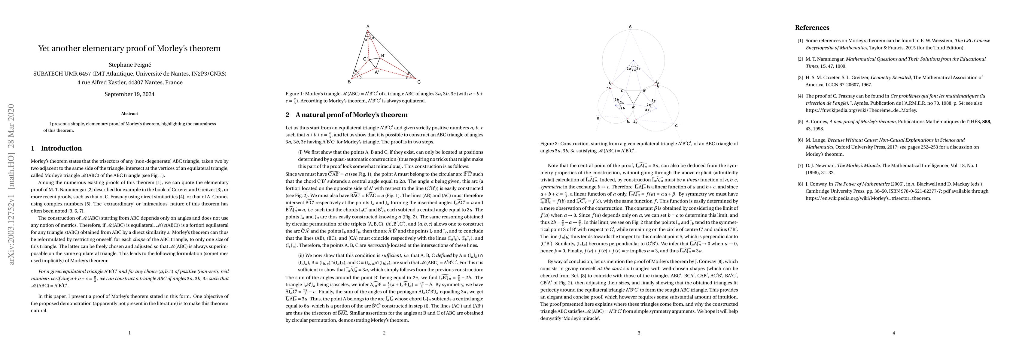 This work differs from existing research on Morley's theorem by providing a concise and accessible proof, highlighting the theorem's naturalness and making it more understandable to a wider audience.