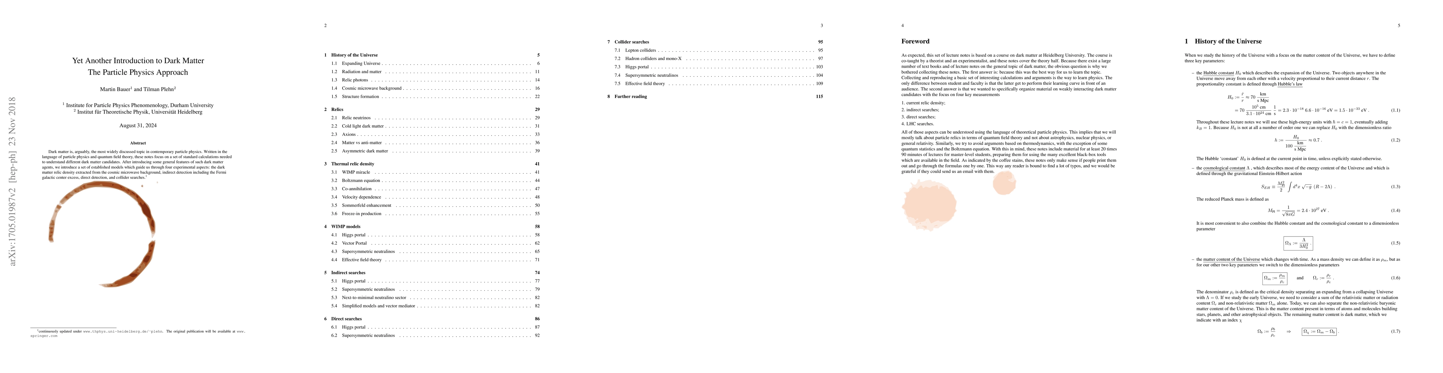 Dark matter is, arguably, the most widely discussed topic in contemporary particle physics. Written in the language of particle physics and quantum field theory, these notes focus on a set of standard calculations needed to understand different dark matter candidates. After introducing some general features of such dark matter agents, we introduce a set of established models which guide us through four experimental aspects: the dark matter relic density extracted from the cosmic microwave background, indirect detection including the Fermi galactic center excess, direct detection, and collider searches.