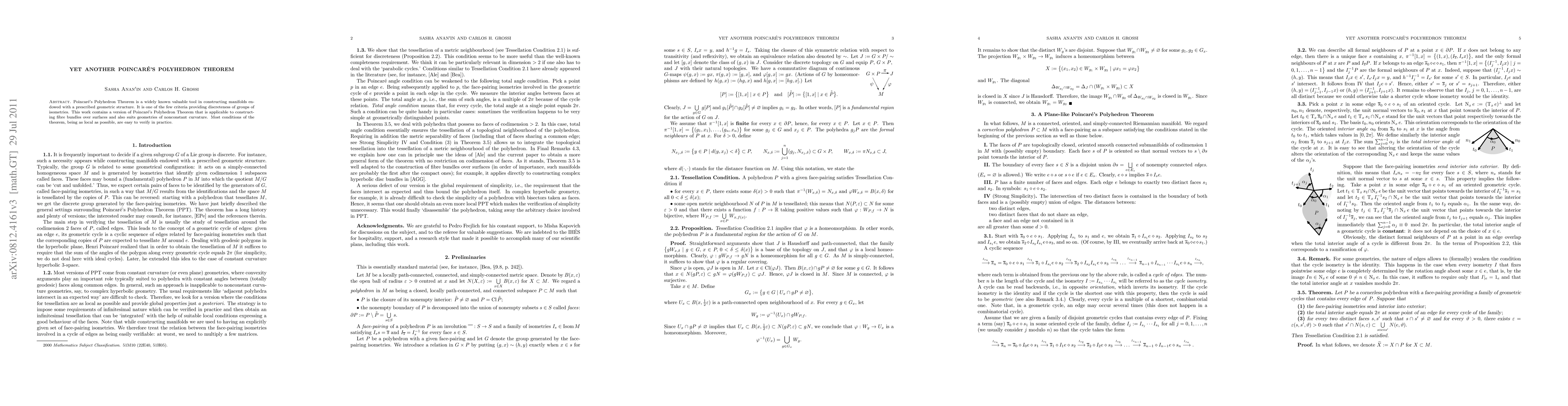 This paper presents a refined version of Poincar\'e's Polyhedron Theorem, extending its applicability to constructing fibre bundles over surfaces and accommodating geometries of nonconstant curvature, with local conditions that simplify practical verification.