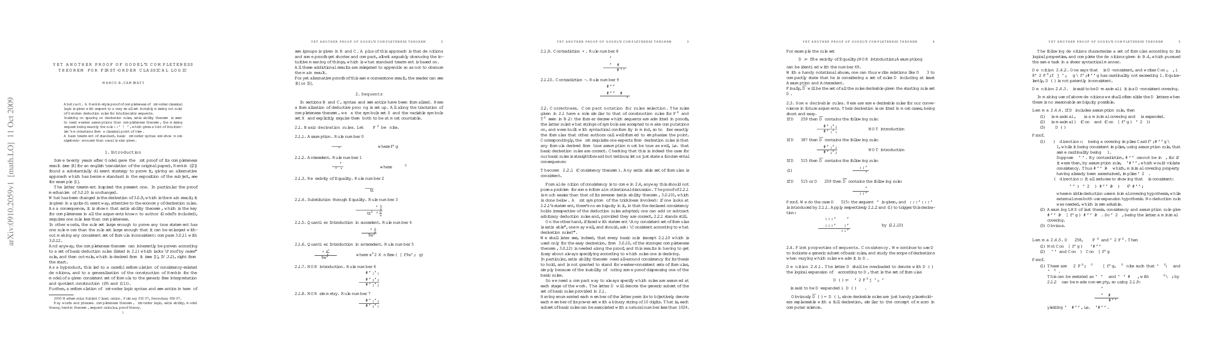 This paper presents a Henkin-style proof of the completeness of first-order classical logic using minimal Genzten deduction rules, revealing that the satisfiability theorem requires weaker assumptions than the completeness theorem, specifically the absence of the rule ~p → p. The paper also explores an algebraic-flavored treatment of basic first-order syntax.
