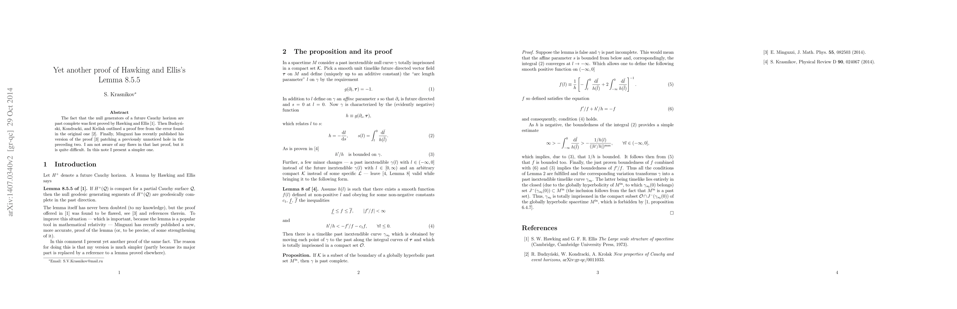 The fact that the null generators of a future Cauchy horizon are past complete was proved first by Hawking and Ellis [1]. Then Budzy\'nski, Kondracki, and Kr\'olak outlined a proof free from an error found in the original one [2]. Finally, a week ago Minguzzi published his version of proof [3] patching a previously unnoticed hole in the preceding two. I am not aware of any flaws in that last proof, but it is quite difficult. In this note I present a simpler one.