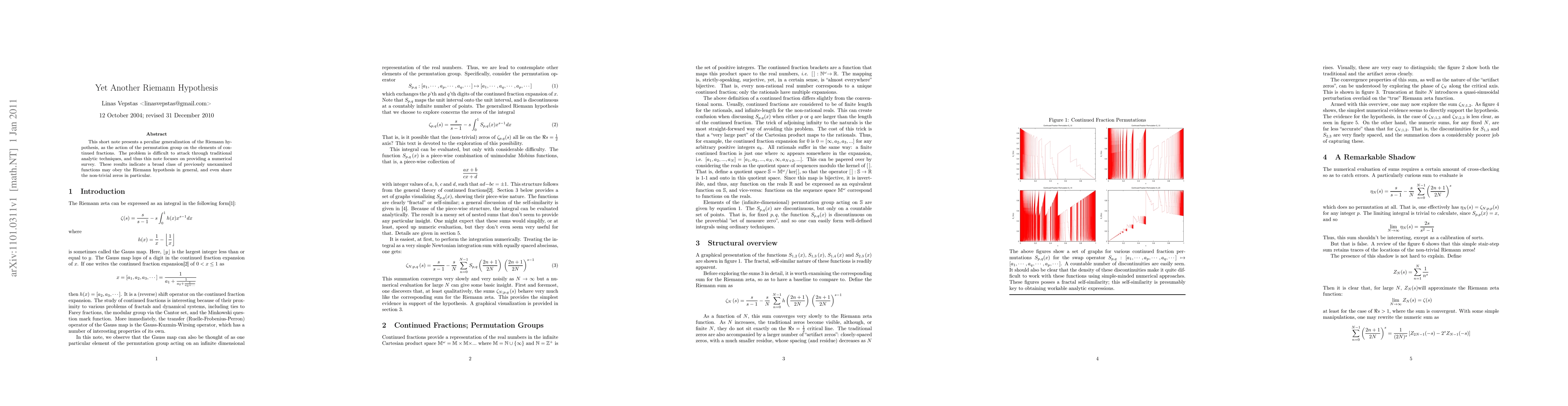 This short note presents a peculiar generalization of the Riemann hypothesis, as the action of the permutation group on the elements of continued fractions. The problem is difficult to attack through traditional analytic techniques, and thus this note focuses on providing a numerical survey. These results indicate a broad class of previously unexamined functions may obey the Riemann hypothesis in general, and even share the non-trivial zeros in particular.