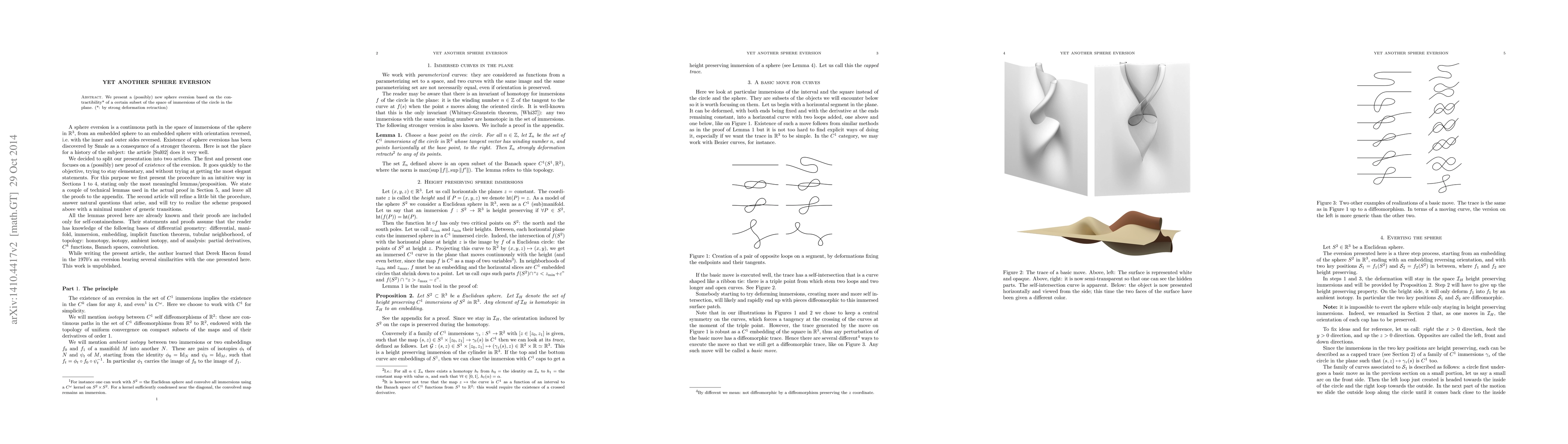 Summary: This paper proposes a novel sphere eversion method relying on the contractibility of a specific subset of circle immersions in the plane, achieved through strong deformation retraction. The sphere eversion process is potentially new and distinct from existing techniques.