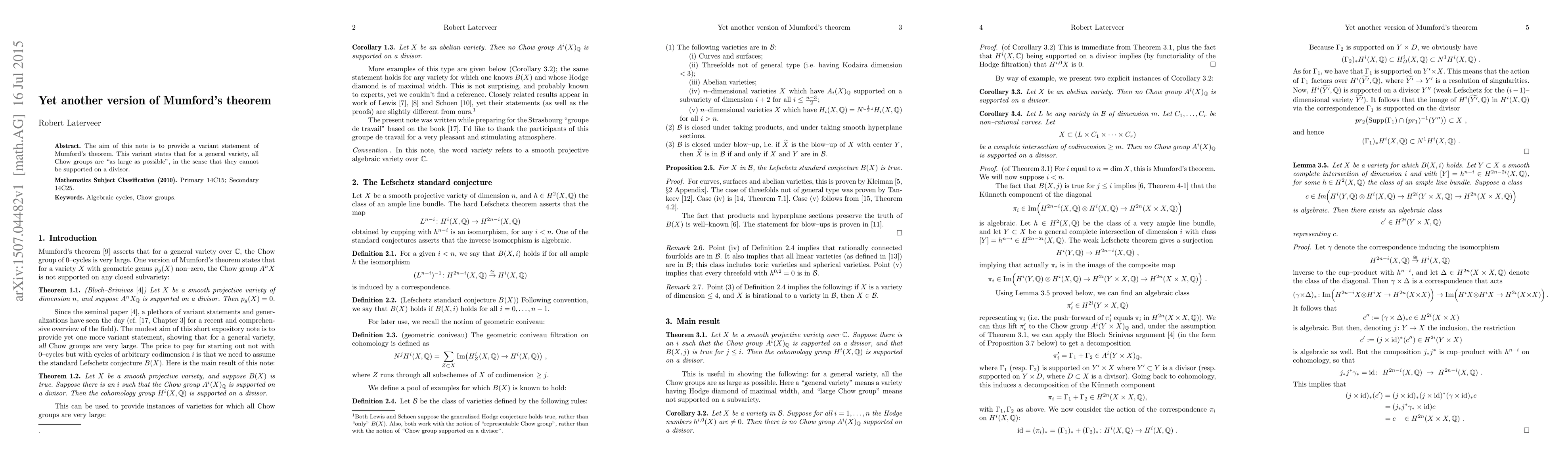 The aim of this note is to provide a variant statement of Mumford's theorem. This variant states that for a general variety, all Chow groups are "as large as possible", in the sense that they cannot be supported on a divisor.