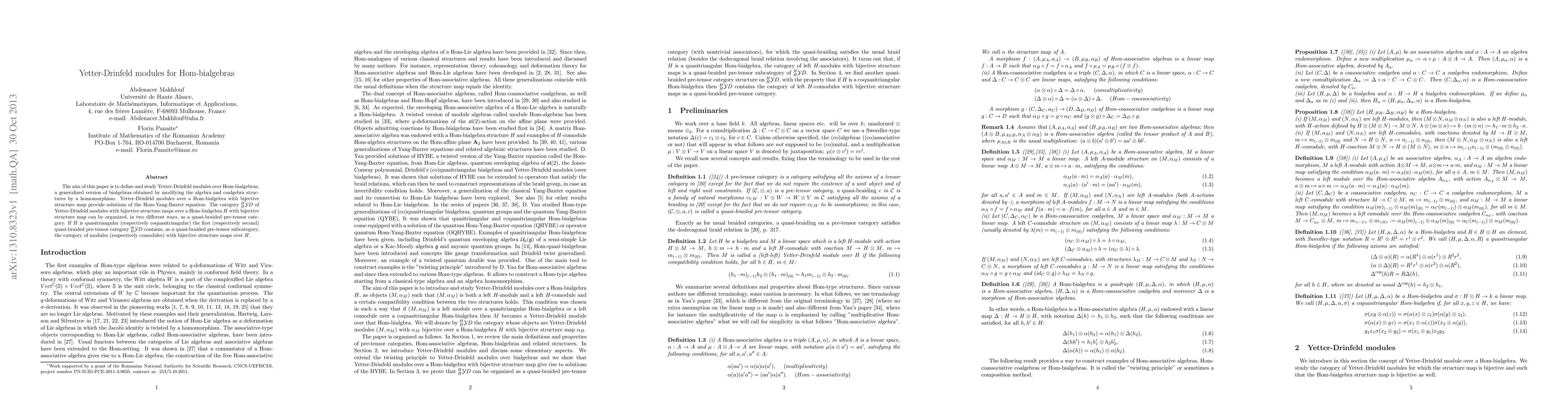 This paper defines Yetter-Drinfeld modules over Hom-bialgebras, which generalize bialgebras via homomorphism modifications. It explores how these modules solve the Hom-Yang-Baxter equation and can form quasi-braided pre-tensor categories under specific conditions.