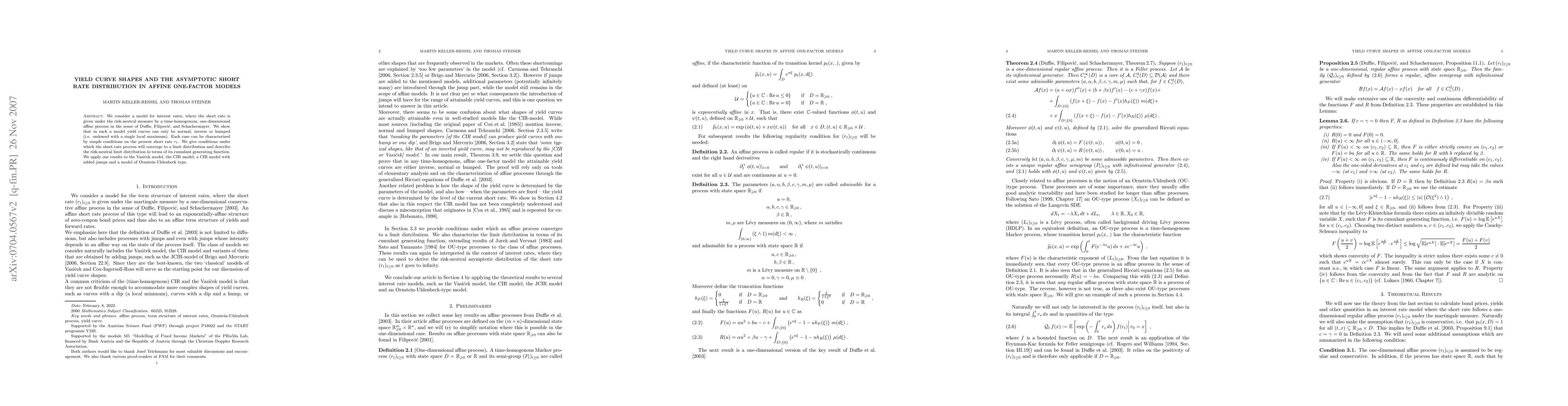 This paper explores affine one-factor models for interest rates, demonstrating that yield curves can only take on normal, inverse, or humped shapes, each characterized by conditions on the current short rate. It also investigates the asymptotic behavior of the short rate, providing its limit distribution in terms of the cumulant generating function and applying these findings to various models including Vasicek, CIR, and Ornstein-Uhlenbeck models.