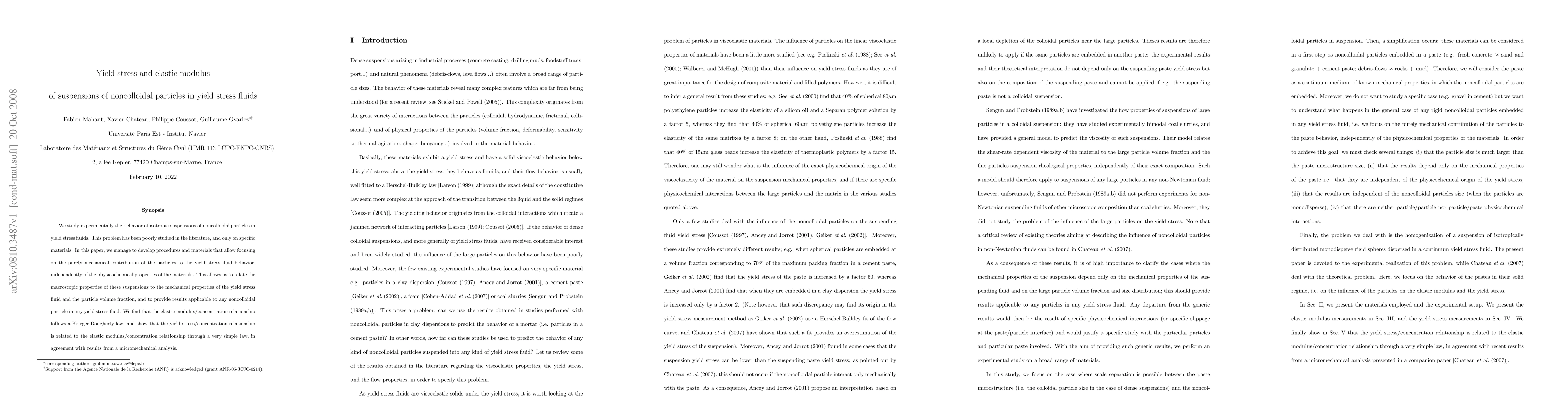 This paper experimentally investigates isotropic suspensions of noncolloidal particles in yield stress fluids, developing methods to isolate the mechanical contributions of particles. It finds that the elastic modulus follows a Krieger-Dougherty law and that the yield stress-concentration relationship correlates with the elastic modulus-concentration relationship, providing generalizable results for any noncolloidal particle in any yield stress fluid.