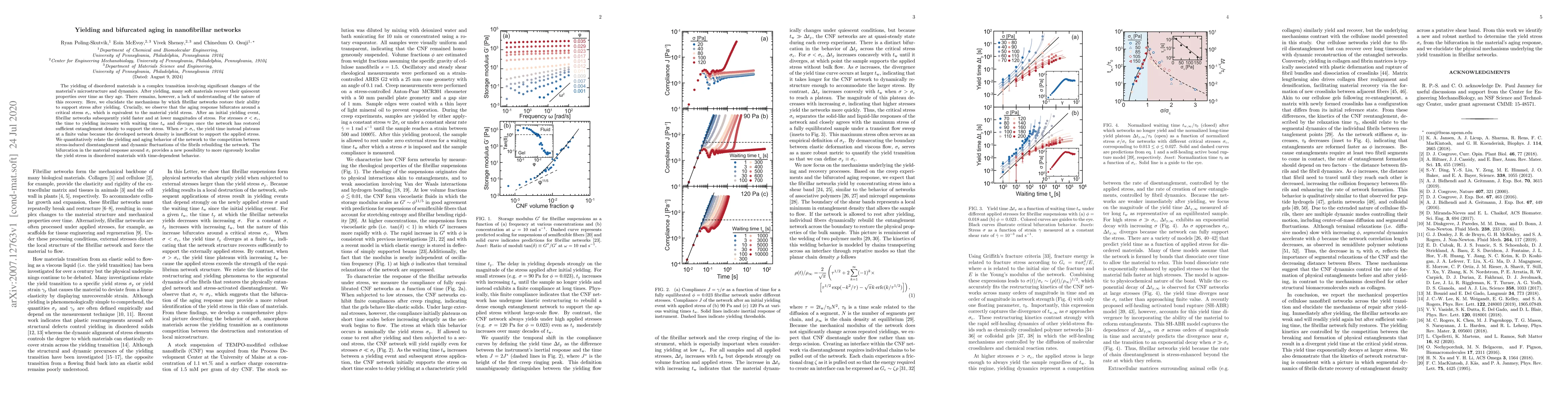The yielding of disordered materials is a complex transition involving significant changes of the material's microstructure and dynamics. After yielding, many soft materials recover their quiescent properties over time as they age. There remains, however, a lack of understanding of the nature of this recovery. Here, we elucidate the mechanisms by which fibrillar networks restore their ability to support stress after yielding. Crucially, we observe that the aging response bifurcates around a critical stress $\sigma_\mathrm{c}$, which is equivalent to the material yield stress. After an initial yielding event, fibrillar networks subsequently yield faster and at lower magnitudes of stress. For stresses $\sigma<\sigma_\mathrm{c}$, the time to yielding increases with waiting time $t_\mathrm{w}$ and diverges once the network has restored sufficient entanglement density to support the stress. When $\sigma > \sigma_\mathrm{c}$, the yield time instead plateaus at a finite value because the developed network density is insufficient to support the applied stress. We quantitatively relate the yielding and aging behavior of the network to the competition between stress-induced disentanglement and dynamic fluctuations of the fibrils rebuilding the network. The bifurcation in the material response around $\sigma_c$ provides a new possibility to more rigorously localize the yield stress in disordered materials with time-dependent behavior.