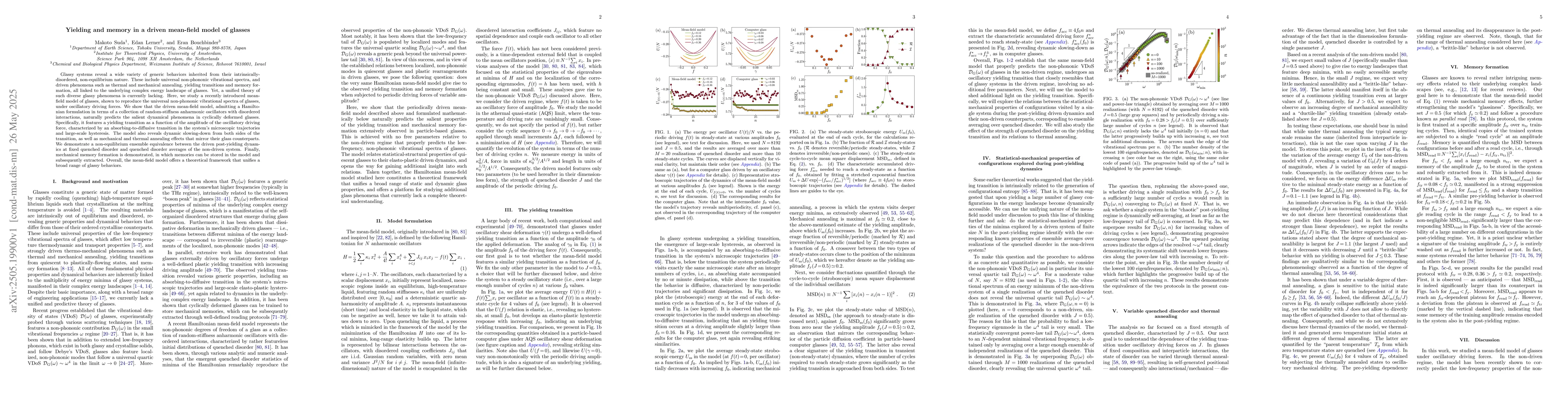 A new mean-field model of glasses predicts yielding transitions, memory formation, and glassy behaviors under oscillatory driving forces, offering a unified theory for diverse glass phenomena.