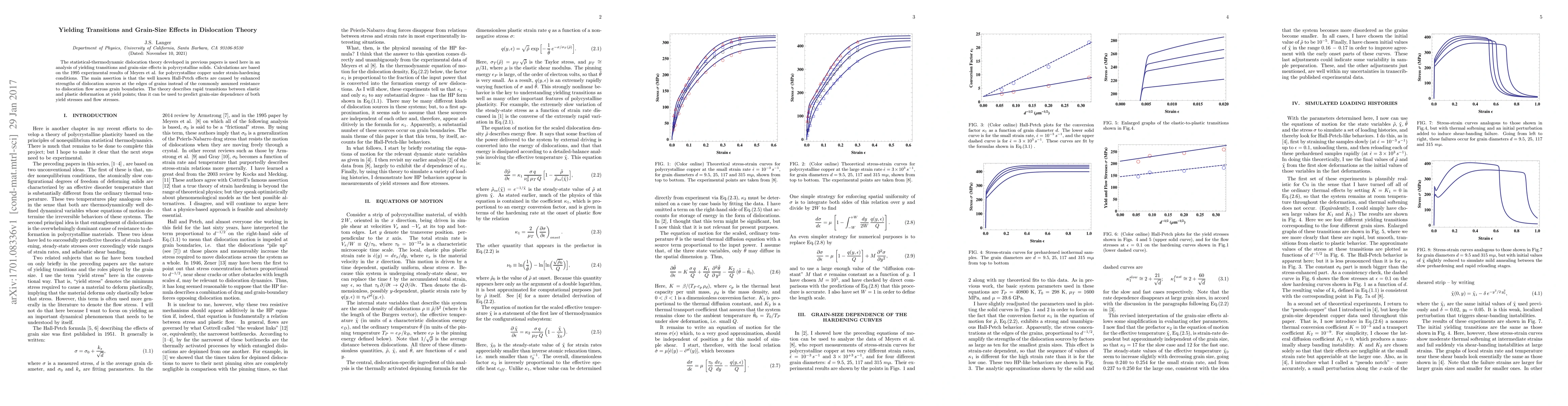 This paper applies statistical-thermodynamic dislocation theory to analyze yielding transitions and grain-size effects in polycrystalline solids, proposing that Hall-Petch effects arise from stronger dislocation sources at grain edges rather than from grain boundary resistance, and it predicts grain-size dependence on yield and flow stresses.