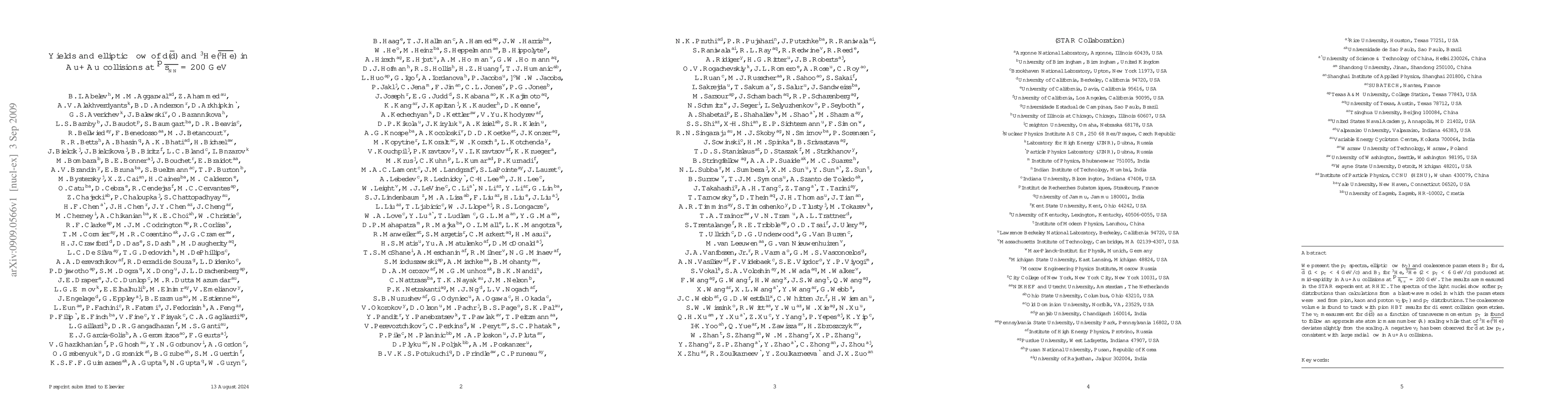 Researchers measured the yields and elliptic flow of deuterium and tritium in Au+Au collisions at RHIC, finding softer $p_T$ distributions than predictions from blast-wave models and tracking coalescence volume with pion HBT results.