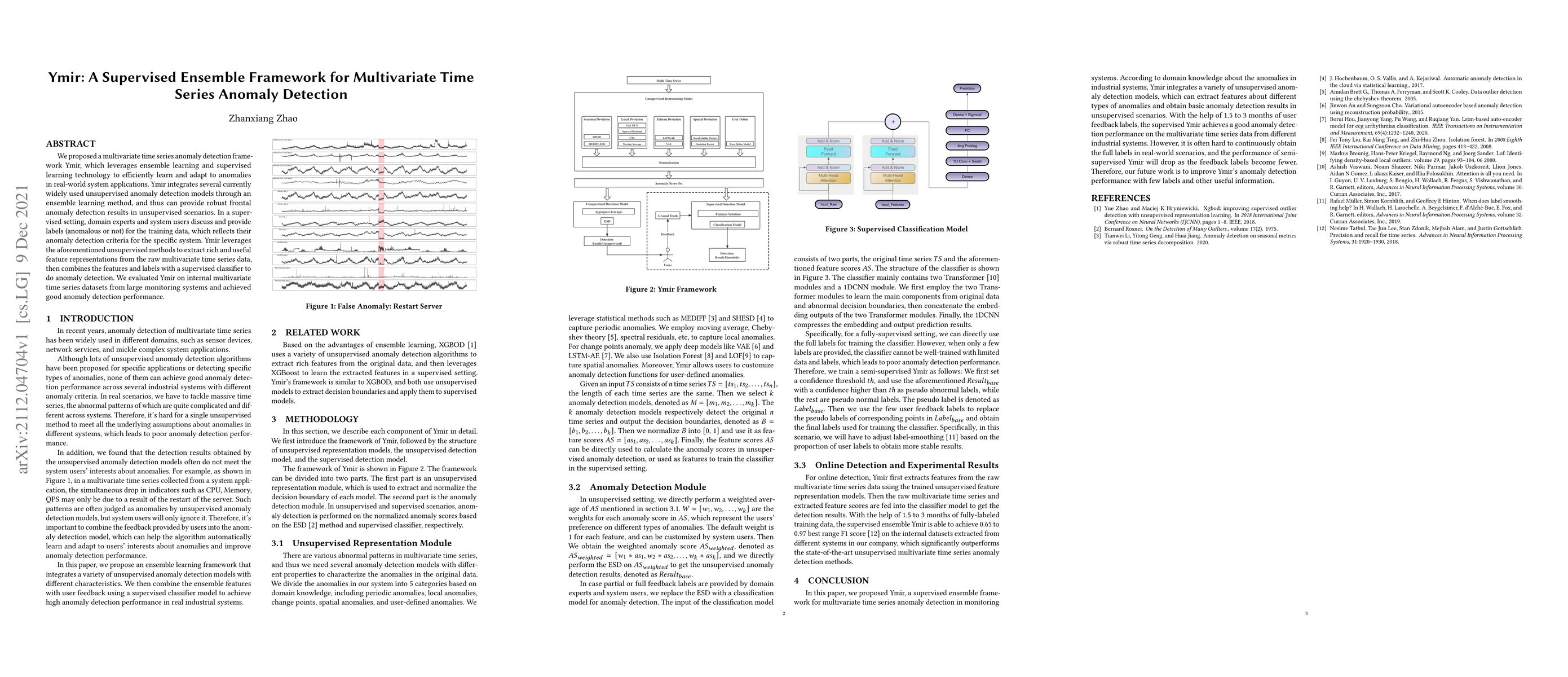 We proposed a multivariate time series anomaly detection frame-work Ymir, which leverages ensemble learning and supervisedlearning technology to efficiently learn and adapt to anomaliesin real-world system applications. Ymir integrates several currentlywidely used unsupervised anomaly detection models through anensemble learning method, and thus can provide robust frontalanomaly detection results in unsupervised scenarios. In a super-vised setting, domain experts and system users discuss and providelabels (anomalous or not) for the training data, which reflects theiranomaly detection criteria for the specific system. Ymir leveragesthe aforementioned unsupervised methods to extract rich and usefulfeature representations from the raw multivariate time series data,then combines the features and labels with a supervised classifier todo anomaly detection. We evaluated Ymir on internal multivariatetime series datasets from large monitoring systems and achievedgood anomaly detection performance.