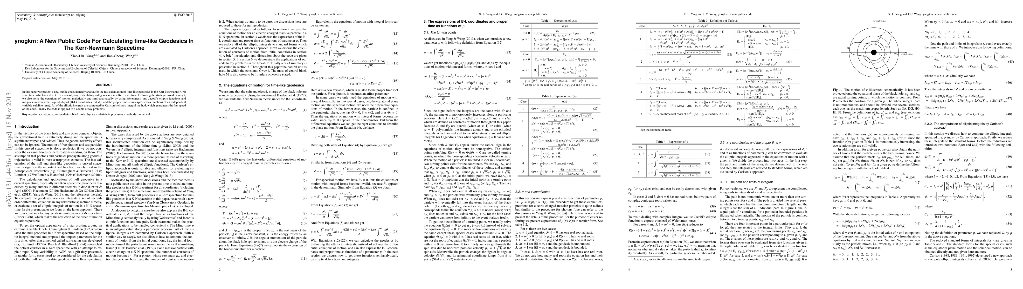 A new public code, ynogkm, is introduced for calculating time-like geodesics in Kerr-Newmann spacetime, with fast analytical solutions using Weierstrass' and Jacobi's elliptic functions.