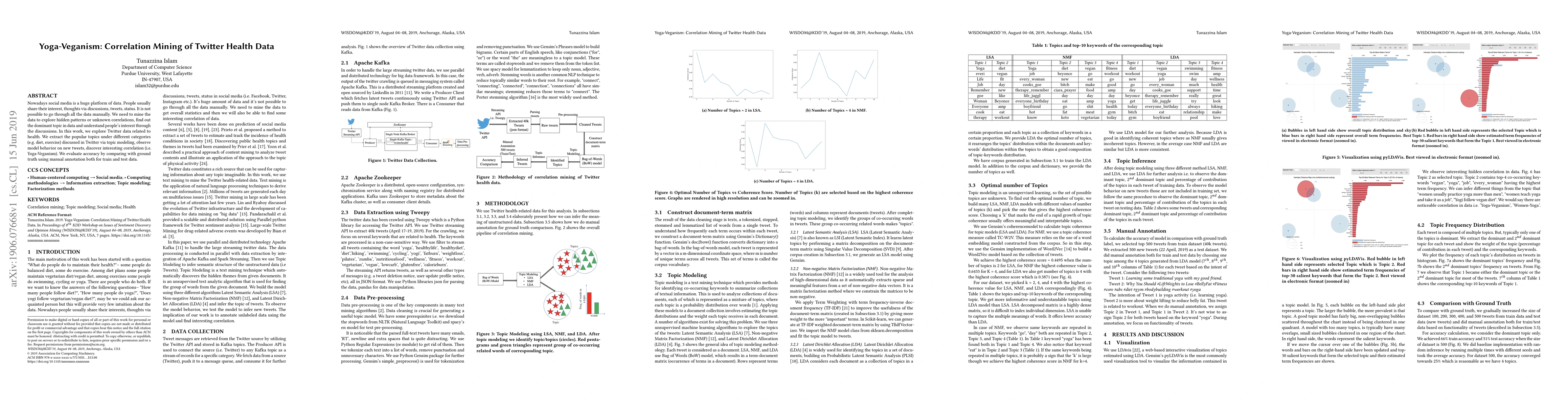 This study mines Twitter data to uncover hidden correlations, particularly focusing on the relationship between yoga and veganism within health-related discussions. It employs topic modeling to extract and analyze popular health topics and evaluates the accuracy of findings through manual annotation.
