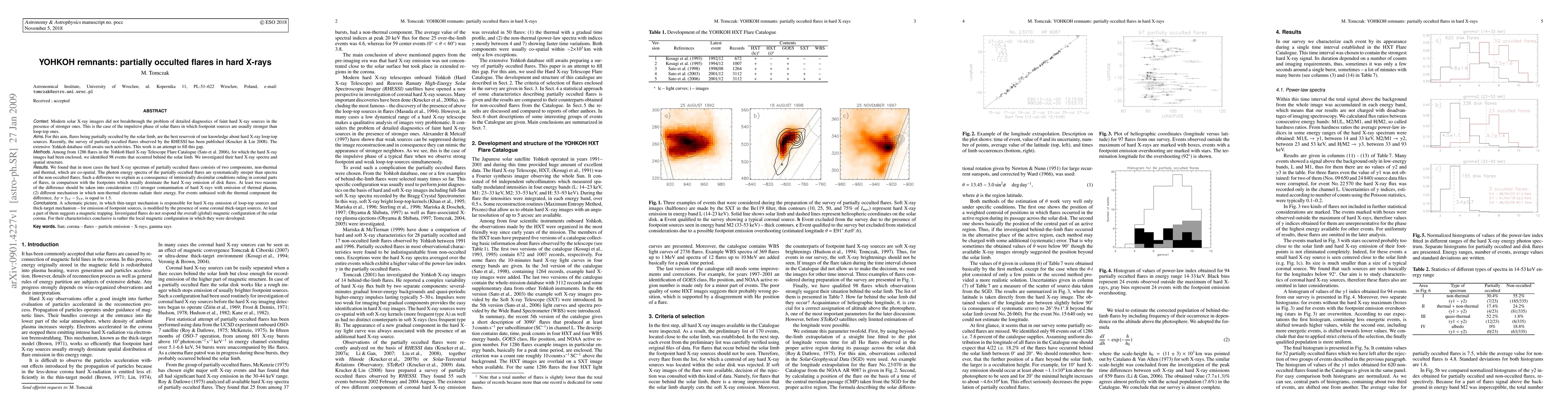 This paper investigates partially occulted flares observed by the YOHKOH satellite, identifying 98 events from a catalogue of 1286 flares. The study reveals that the hard X-ray spectra of these flares typically consist of two components, non-thermal and thermal, and are steeper than those of non-occulted flares, suggesting different magnetic and plasma conditions in coronal versus footpoint regions.
