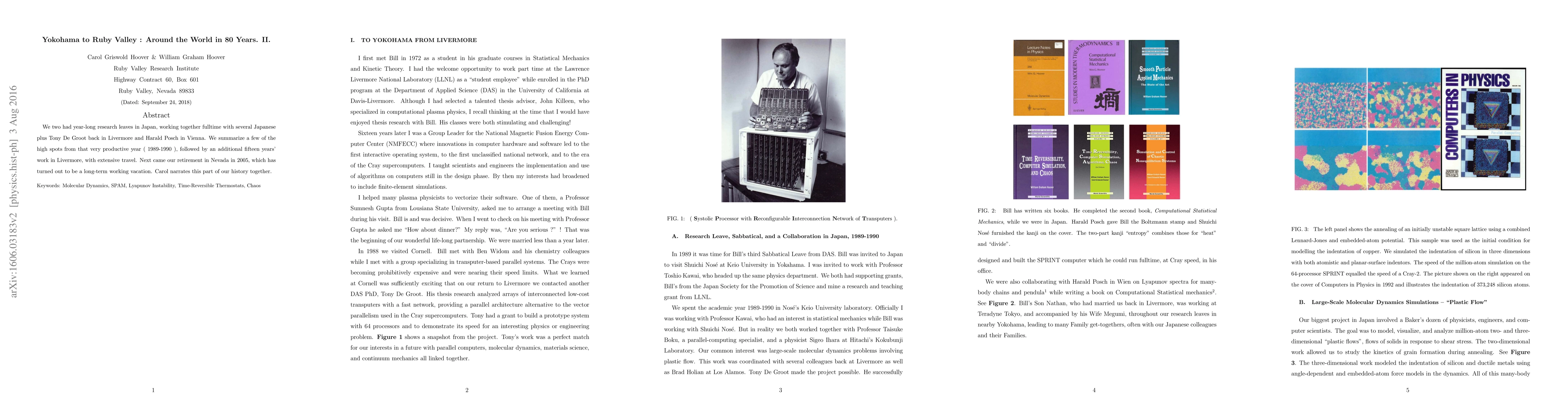 We two had year-long research leaves in Japan, working together fulltime with several Japanese plus Tony De Groot back in Livermore and Harald Posch in Vienna. We summarize a few of the high spots from that very productive year ( 1989-1990 ), followed by an additional fifteen years' work in Livermore, with extensive travel. Next came our retirement in Nevada in 2005, which has turned out to be a long-term working vacation. Carol narrates this part of our history together.