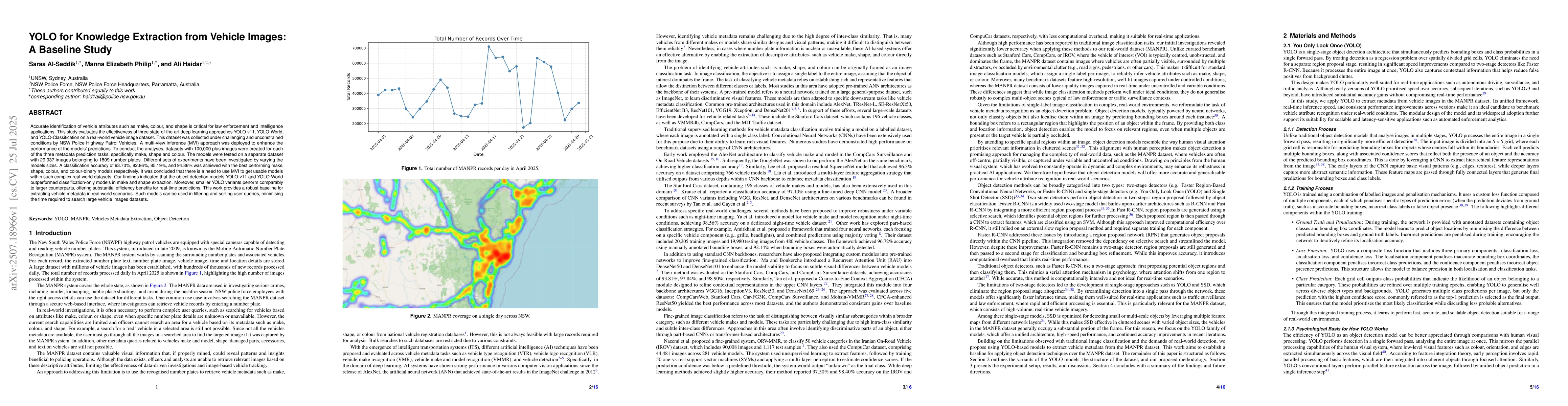 Accurate identification of vehicle attributes such as make, colour, and shape is critical for law enforcement and intelligence applications. This study evaluates the effectiveness of three state-of-the-art deep learning approaches YOLO-v11, YOLO-World, and YOLO-Classification on a real-world vehicle image dataset. This dataset was collected under challenging and unconstrained conditions by NSW Police Highway Patrol Vehicles. A multi-view inference (MVI) approach was deployed to enhance the performance of the models' predictions. To conduct the analyses, datasets with 100,000 plus images were created for each of the three metadata prediction tasks, specifically make, shape and colour. The models were tested on a separate dataset with 29,937 images belonging to 1809 number plates. Different sets of experiments have been investigated by varying the models sizes. A classification accuracy of 93.70%, 82.86%, 85.19%, and 94.86% was achieved with the best performing make, shape, colour, and colour-binary models respectively. It was concluded that there is a need to use MVI to get usable models within such complex real-world datasets. Our findings indicated that the object detection models YOLO-v11 and YOLO-World outperformed classification-only models in make and shape extraction. Moreover, smaller YOLO variants perform comparably to larger counterparts, offering substantial efficiency benefits for real-time predictions. This work provides a robust baseline for extracting vehicle metadata in real-world scenarios. Such models can be used in filtering and sorting user queries, minimising the time required to search large vehicle images datasets.
