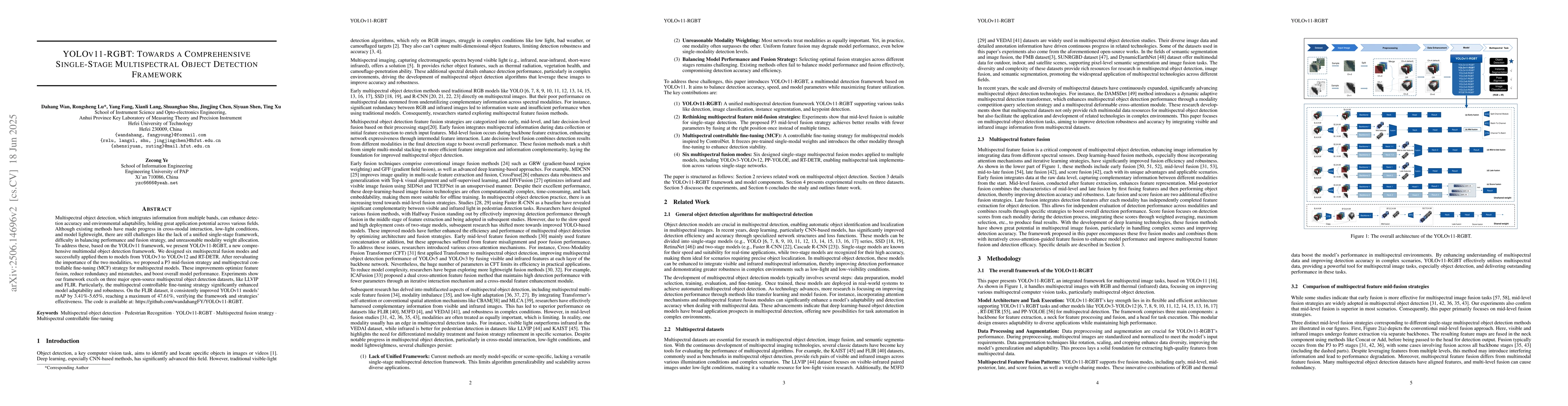 The paper presents YOLOv11-RGBT, a comprehensive single-stage multispectral object detection framework built upon YOLOv11. It introduces six multispectral fusion modes and evaluates them on various YOLO versions and RT-DETR, proposing P3 mid-fusion and multispectral controllable fine-tuning (MCF) strategies to optimize performance.