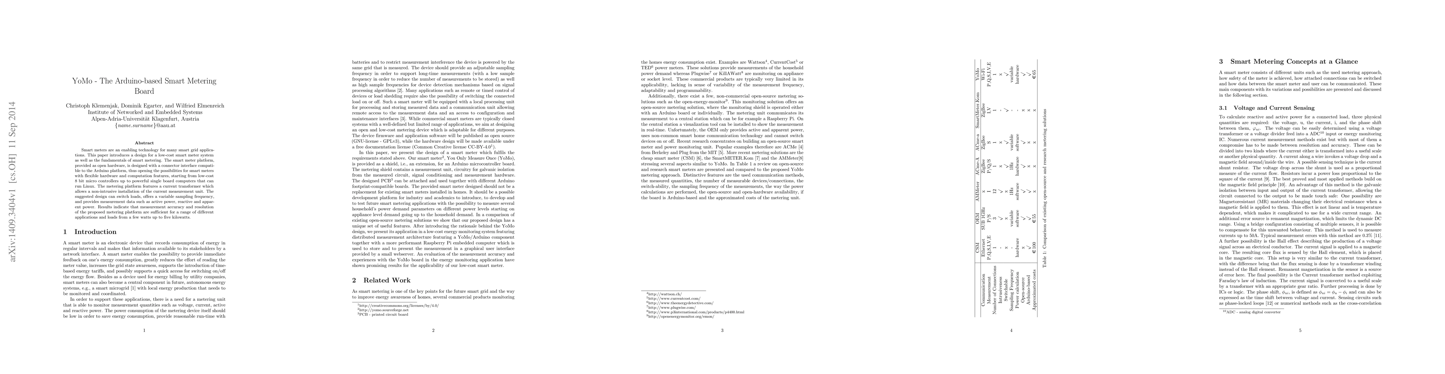 This paper presents a low-cost, open-hardware smart metering platform based on Arduino, featuring a current transformer for non-intrusive current measurement, load switching, and variable sampling frequency. The design supports a range of applications from low-power to five kilowatts with sufficient accuracy and resolution.