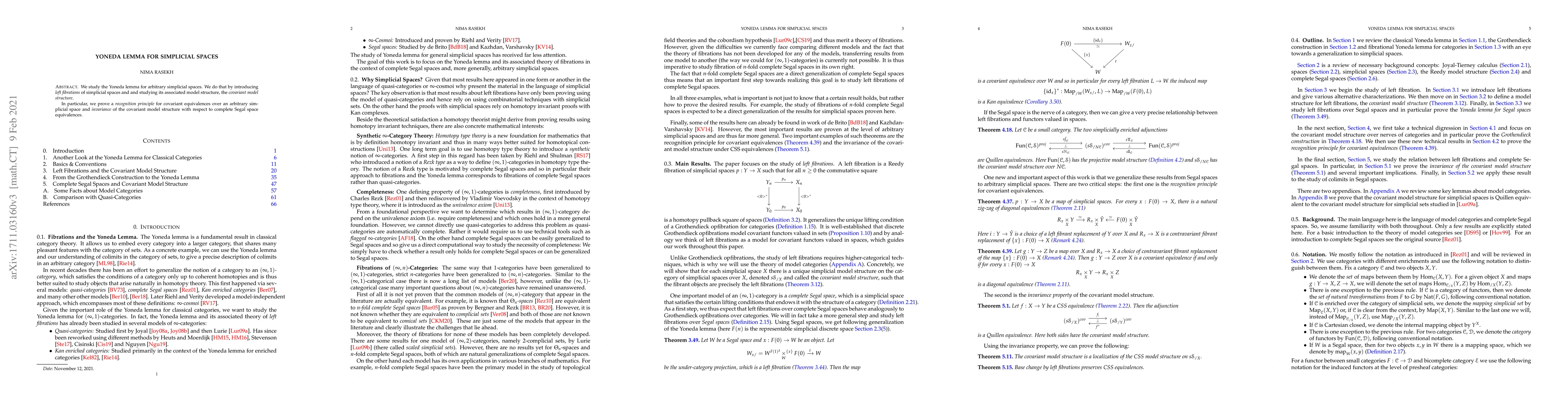 The paper explores the Yoneda lemma within the context of simplicial spaces, utilizing left fibrations and the covariant model structure to establish a recognition principle for covariant equivalences and the invariance of this structure under complete Segal space equivalences.
